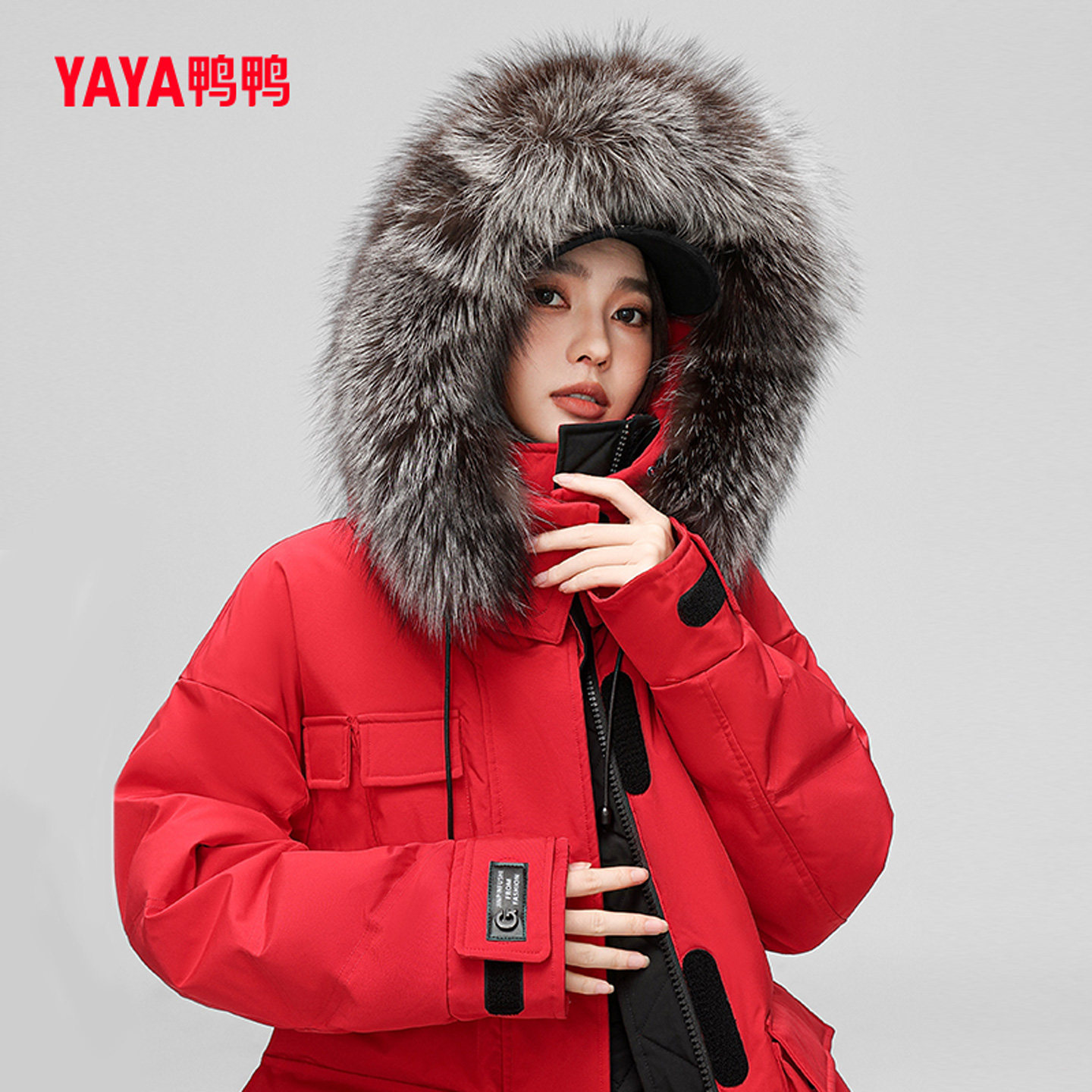 【鞠婧祎同款】鸭鸭2025年冬新款百搭短款女士纯色立领羽绒服外套
