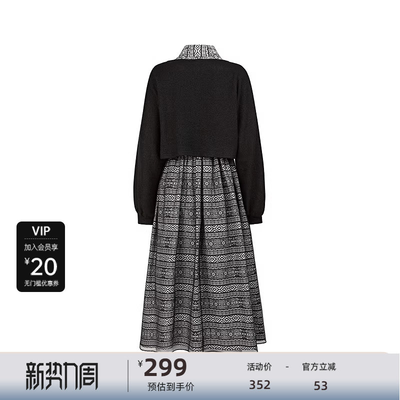 sdeer圣迪奥女装印花收腰网纱针织衫连衣裙套装S244Z1417