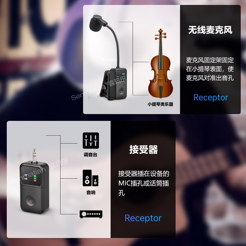 森玛田小提琴无线拾音器大提琴拾音麦克风专业演奏级话筒录音扩音