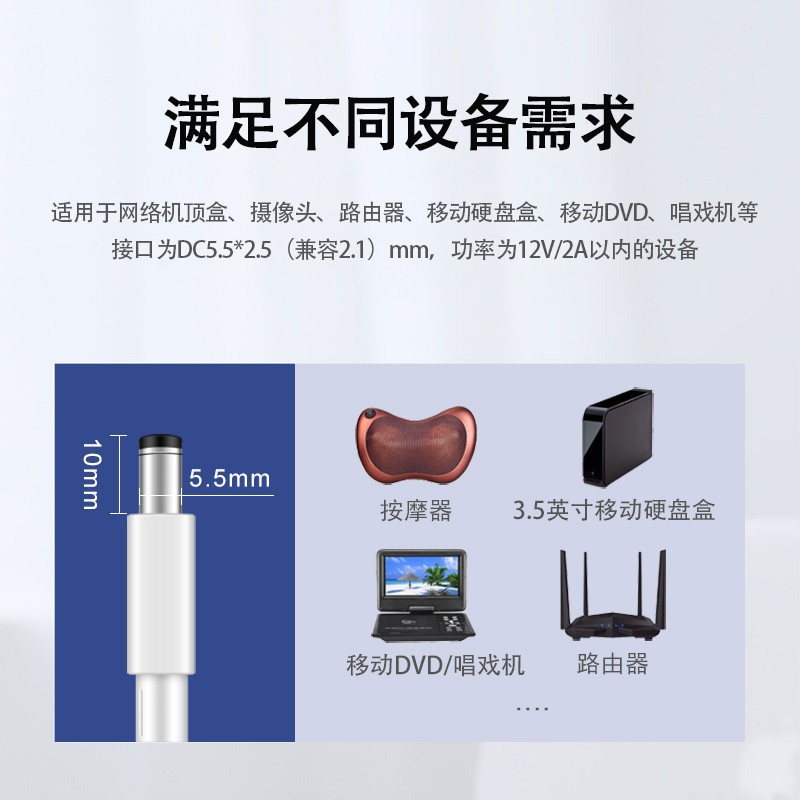 景赛 12V2A电源适配器通用监控路由器光猫机顶盒移动硬盘盒子电子琴车载音响箱按摩器充电器dc12伏直流电源线