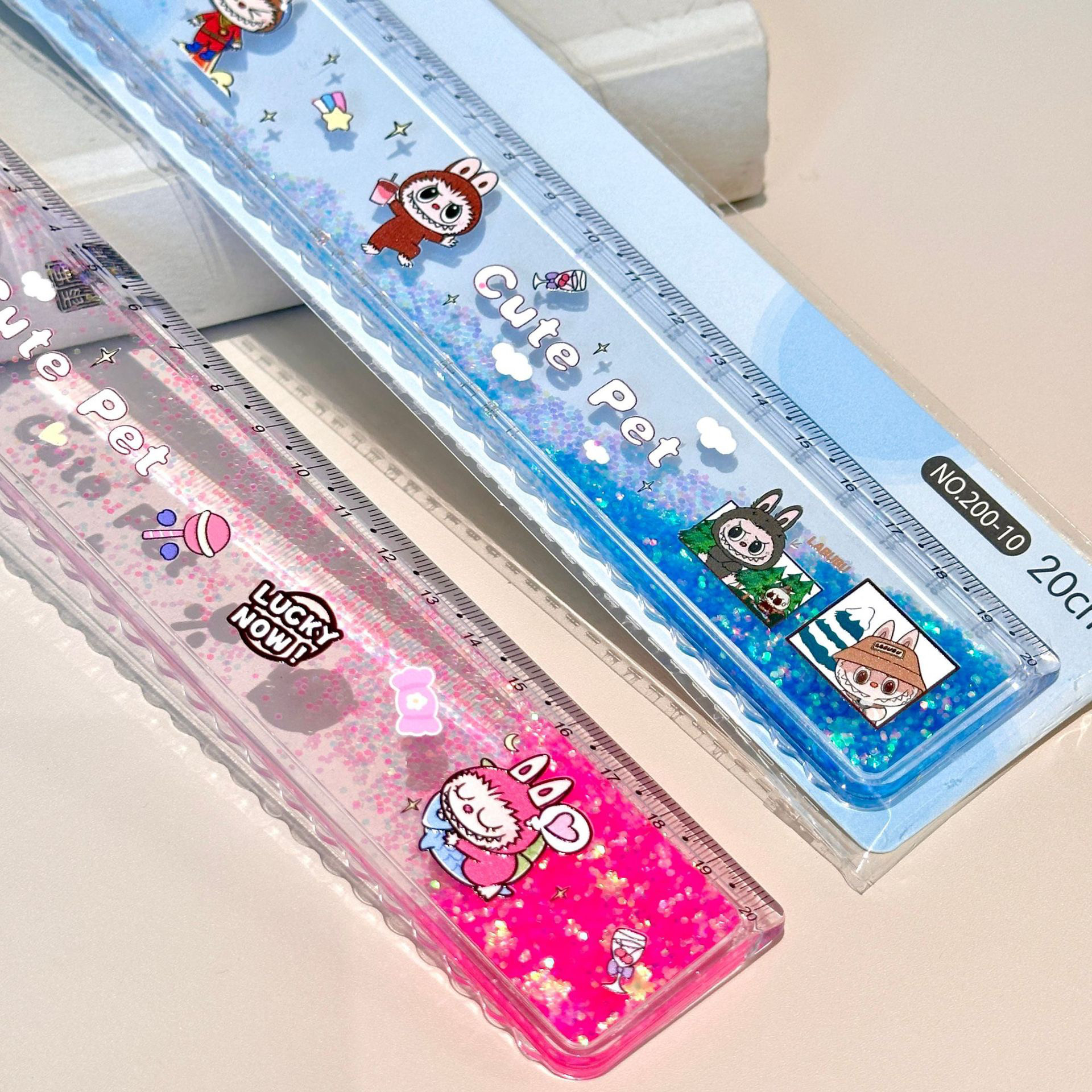 卡通布娃娃直尺流沙高颜值尺子20cm创意加厚波浪尺小学生文具用品