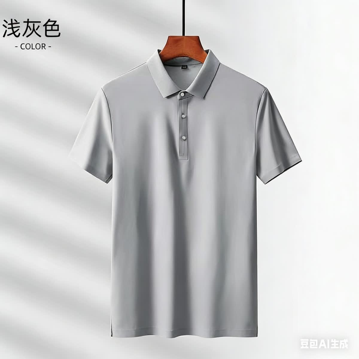 冰丝无痕polo衫男士夏季宽松翻领短袖薄款速干透气中年爸爸装t恤