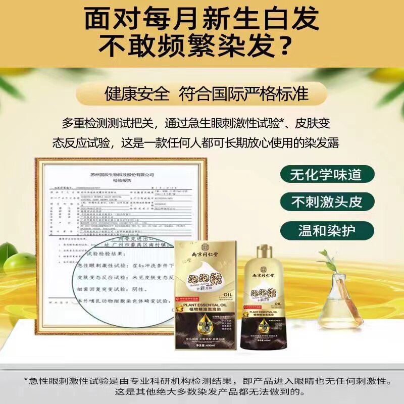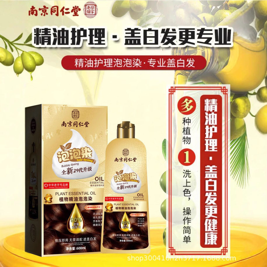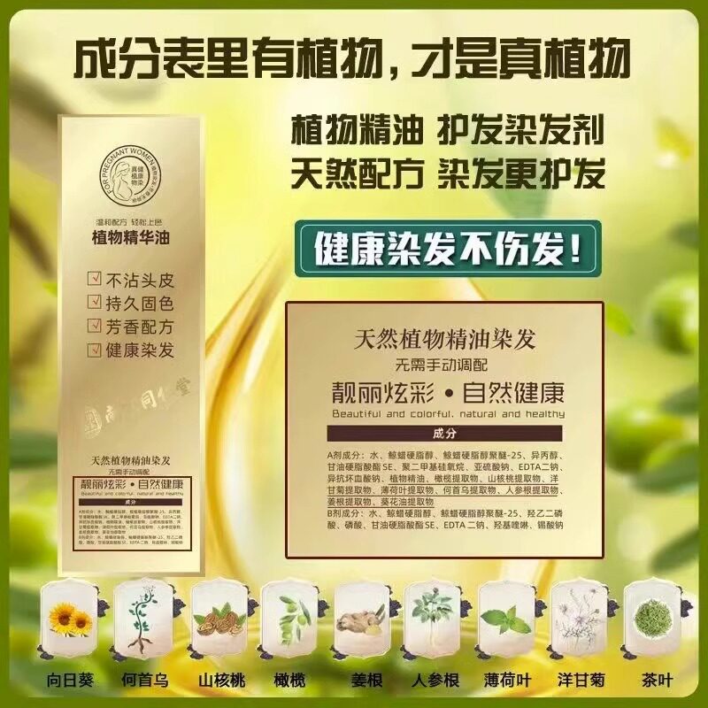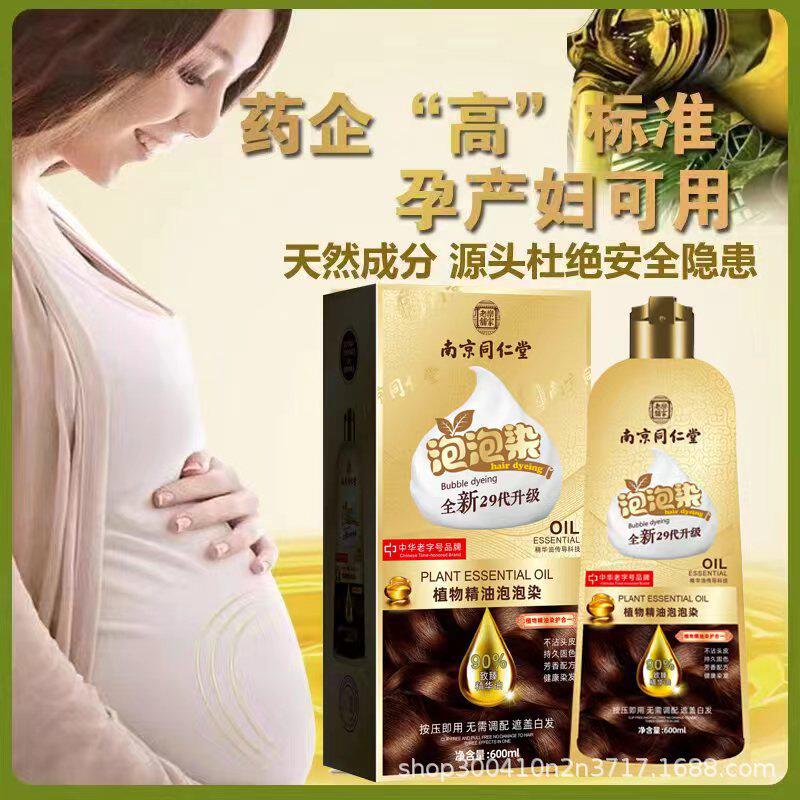 同仁堂孕妇染发剂天然植物纯无刺激泡泡染膏黑茶色盖白发不沾棕色