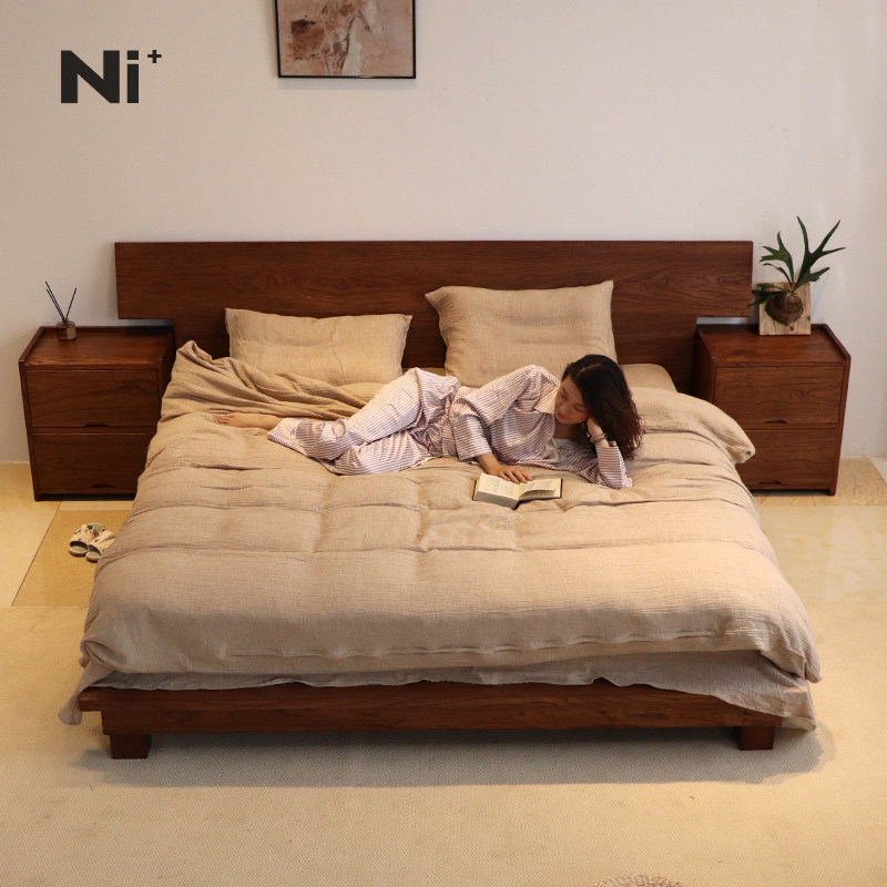 Ni尼家实木床法式复古风1.8m双人床现代简约床中古主卧酒店民宿床
