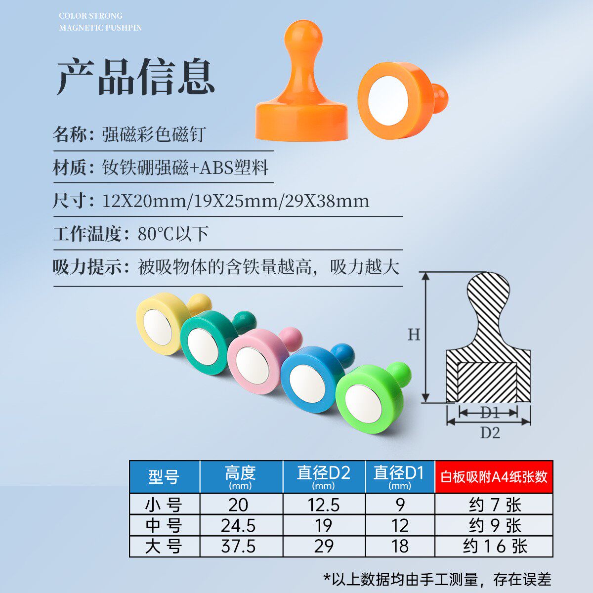 磁铁强磁圆形吸铁石磁粒黑板贴小磁扣强磁白板磁铁彩色吸磁贴磁力扣磁钉白班贴教学用具老师用儿童加强磁强力