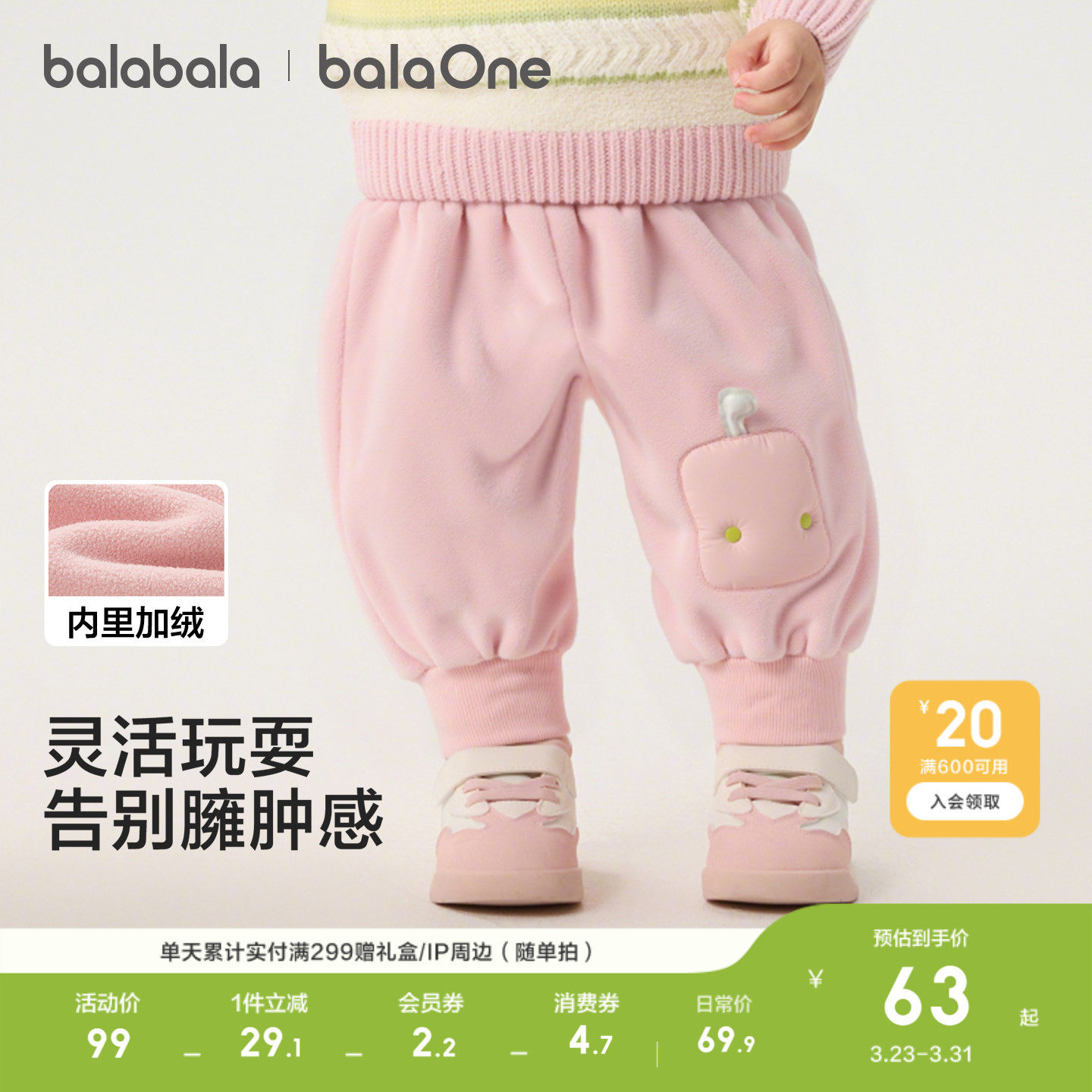 巴拉巴拉童装宝宝加绒长裤男童女童2026冬装休闲儿童保暖加厚裤子