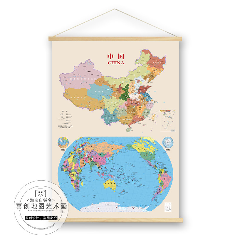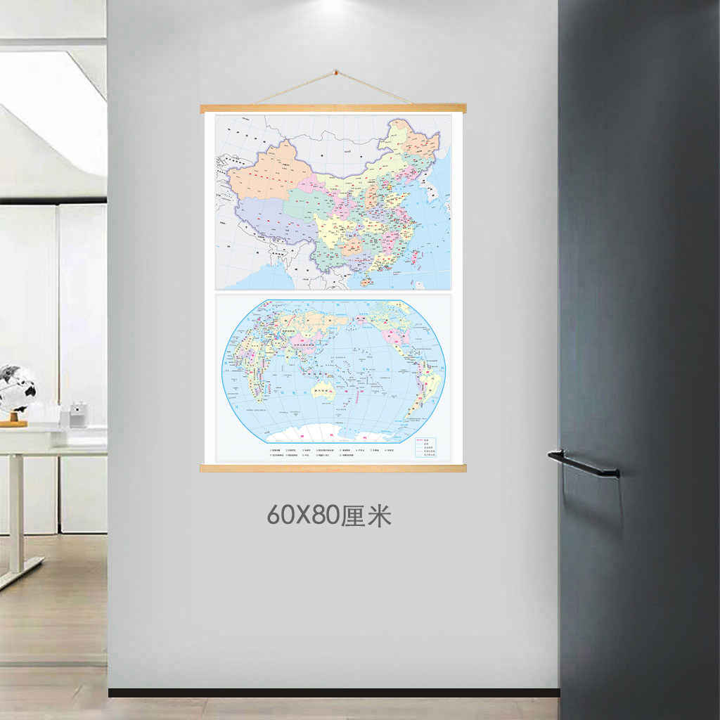 2025地图实木挂画中国世界书房地理办公室餐厅教室走廊装饰画墙画