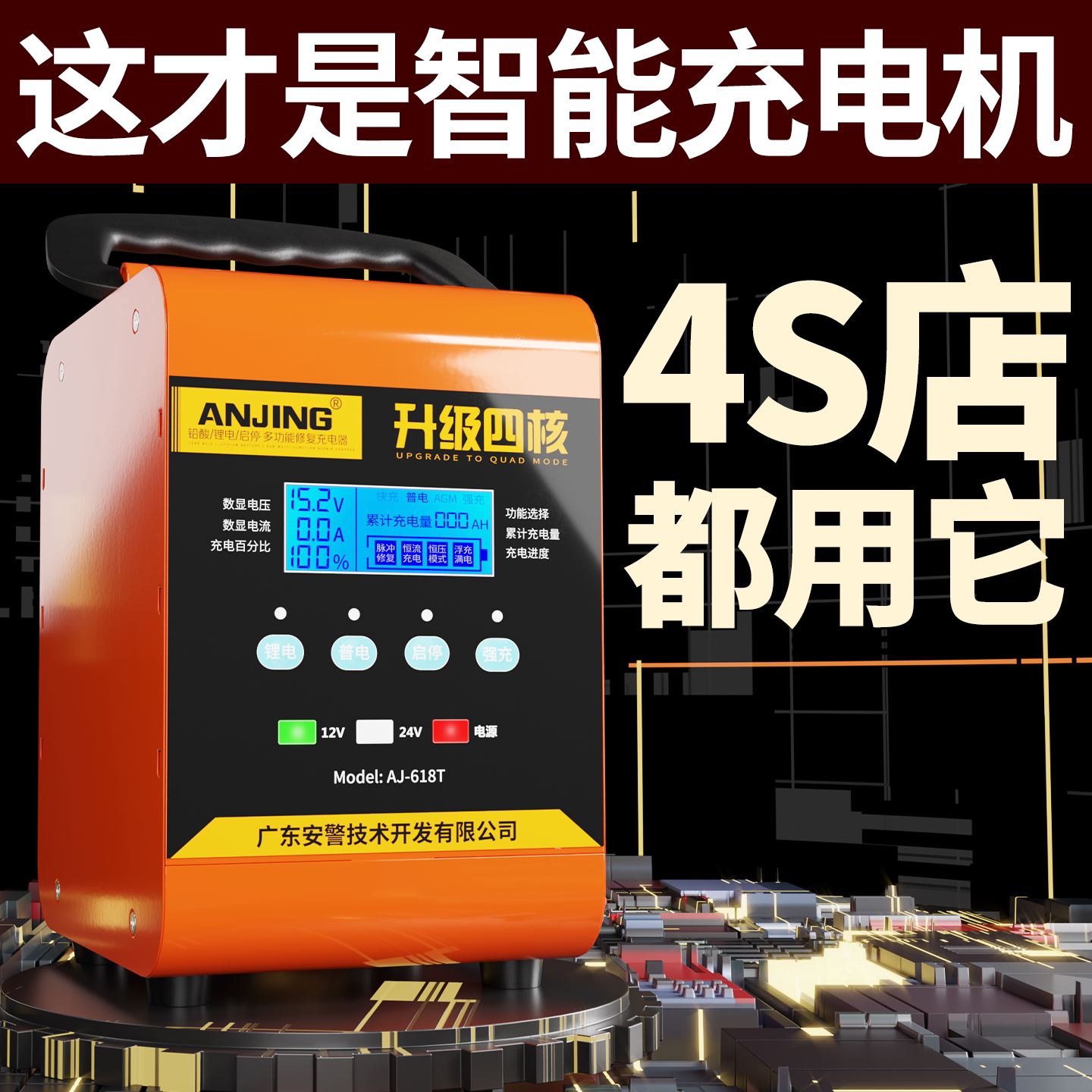 汽车电瓶充电器摩托车智能修复12v24v蓄电池大功率脉冲充电机电源