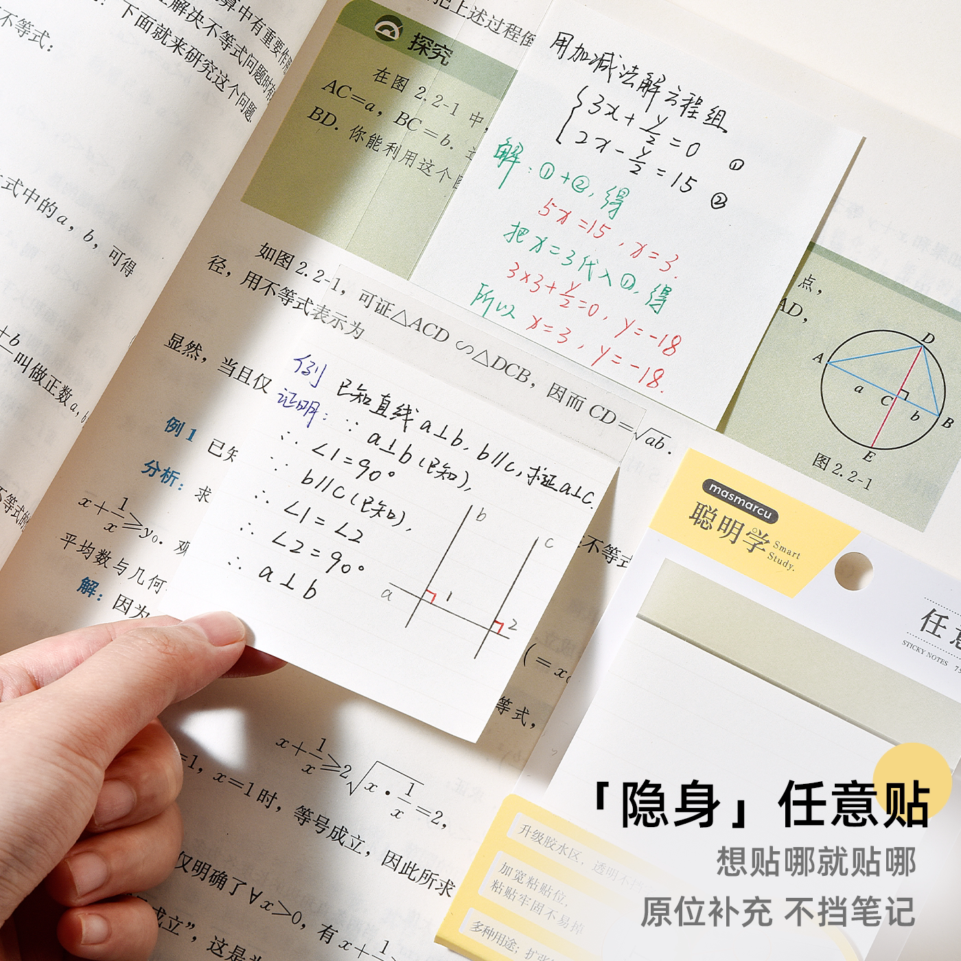 晨光聪明学任意贴透明扩张贴隐形便利贴学生纠正错题笔记补充记事贴可叠加多规格办公学习用品可粘贴便签本