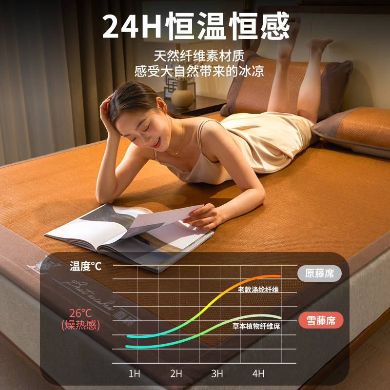 凉席夏天藤席2026新款家用夏季可折叠宿舍双面款冰丝席冬夏两用