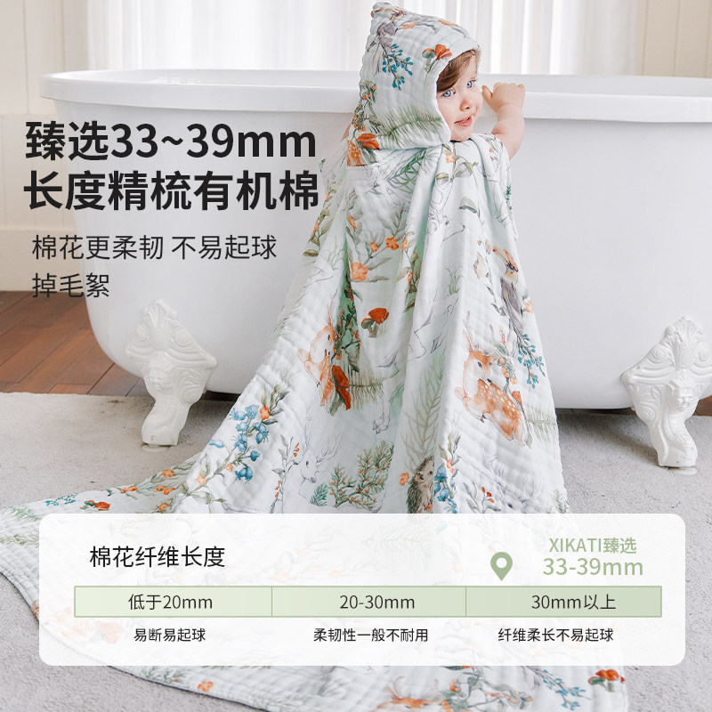 喜卡缇婴儿纱布浴巾儿童a类纯棉新生儿专用宝宝斗篷浴袍6层可穿式
