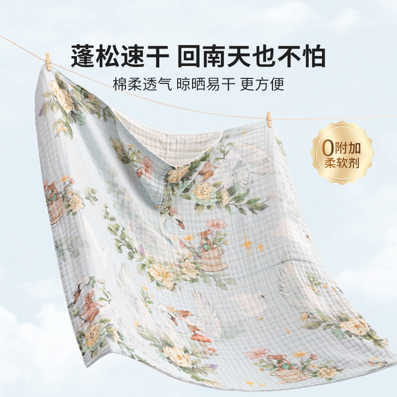 婴儿纱布浴巾新生儿童纯棉包被宝宝洗澡专用超软全棉大尺寸裹纱巾