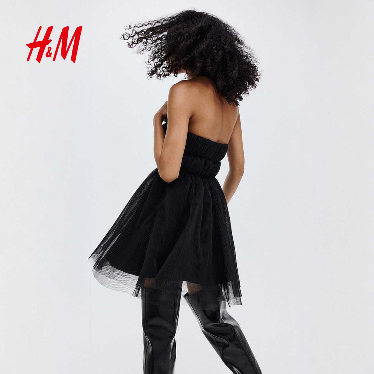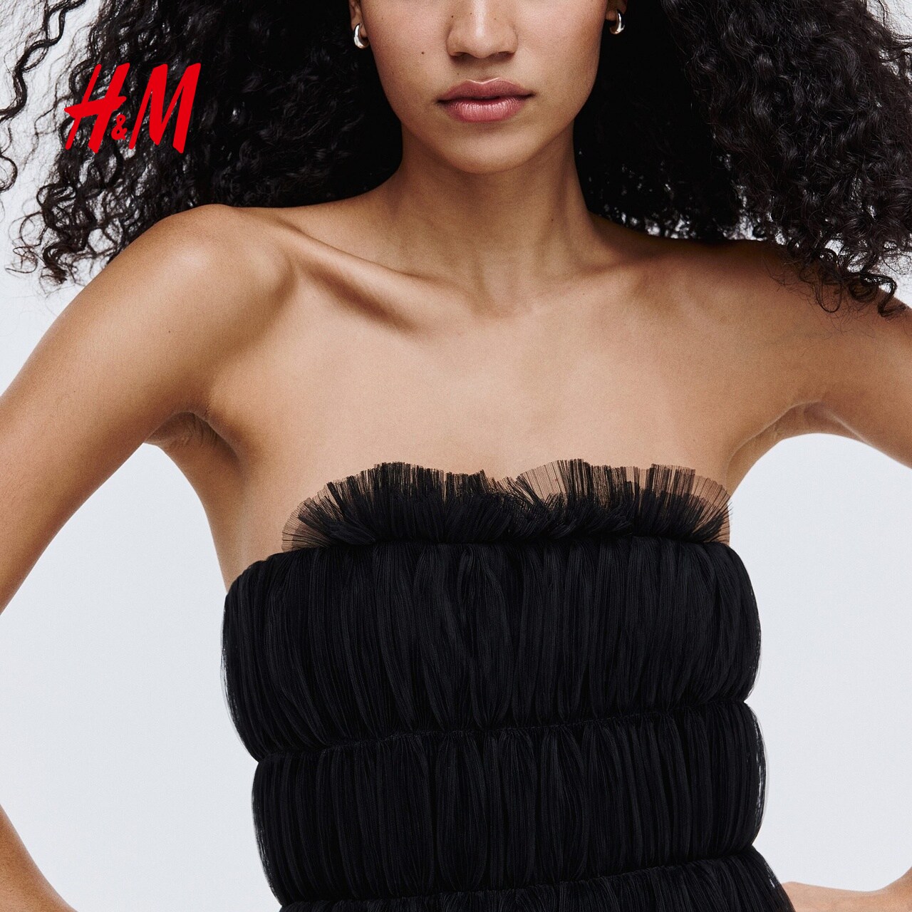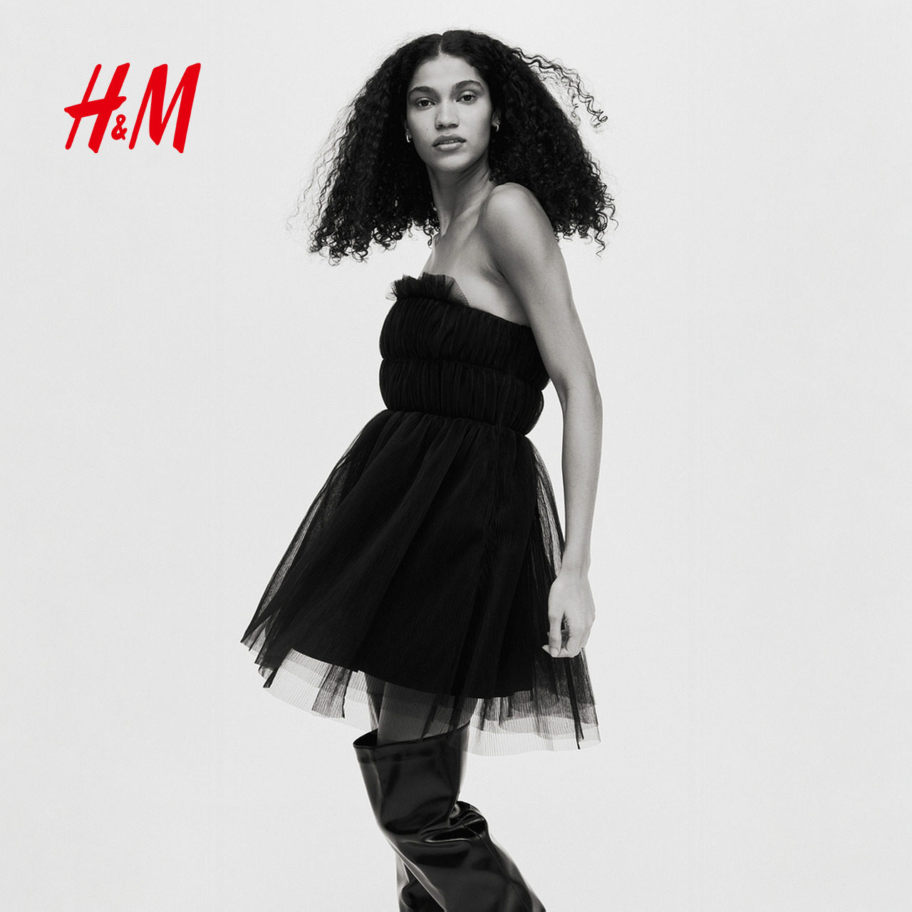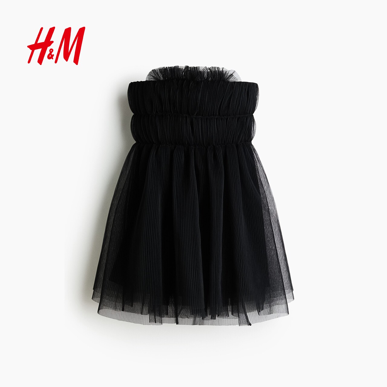 iqcq气球熊时尚辣妹套装秋季抹胸连衣裙女收腰一字肩黑色蓬蓬裙子
