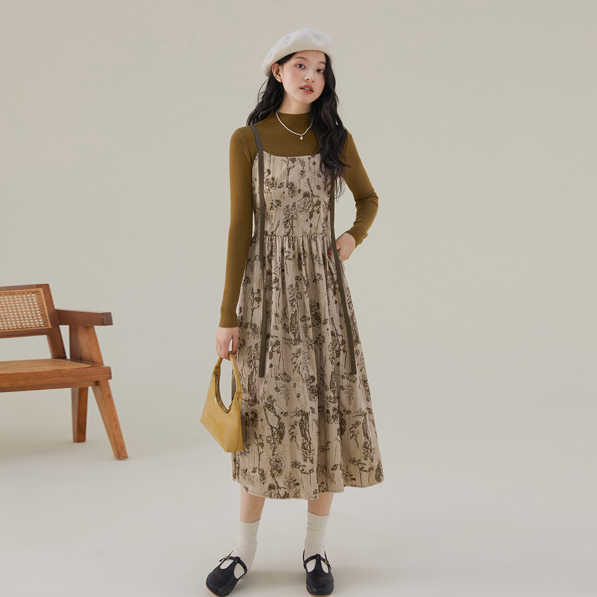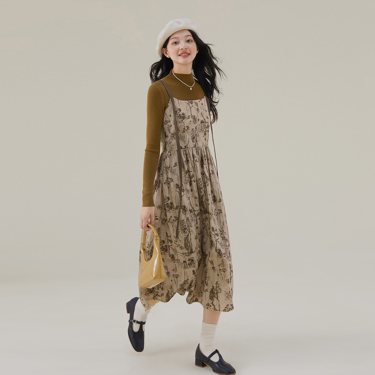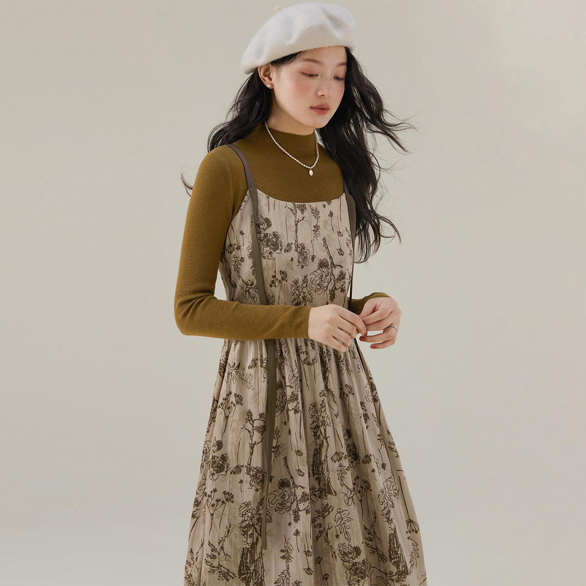 one more设计感碎花吊带裙女2025秋季丝绒连衣裙高级感背带裙裙子
