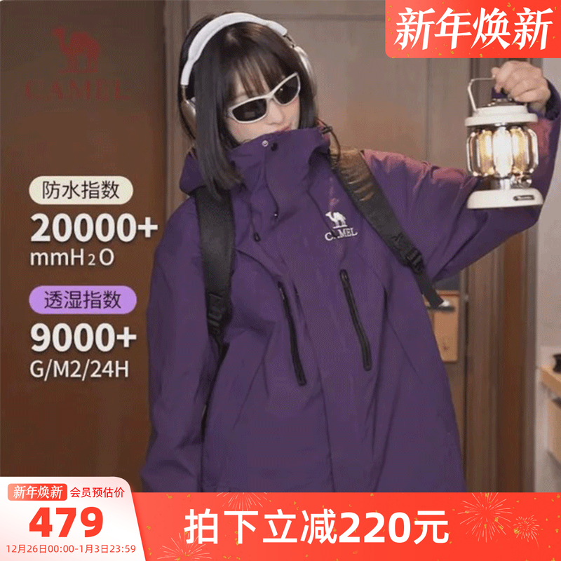 破晓︱骆驼女装紫色冲锋衣外套三合一秋冬防水休闲外套