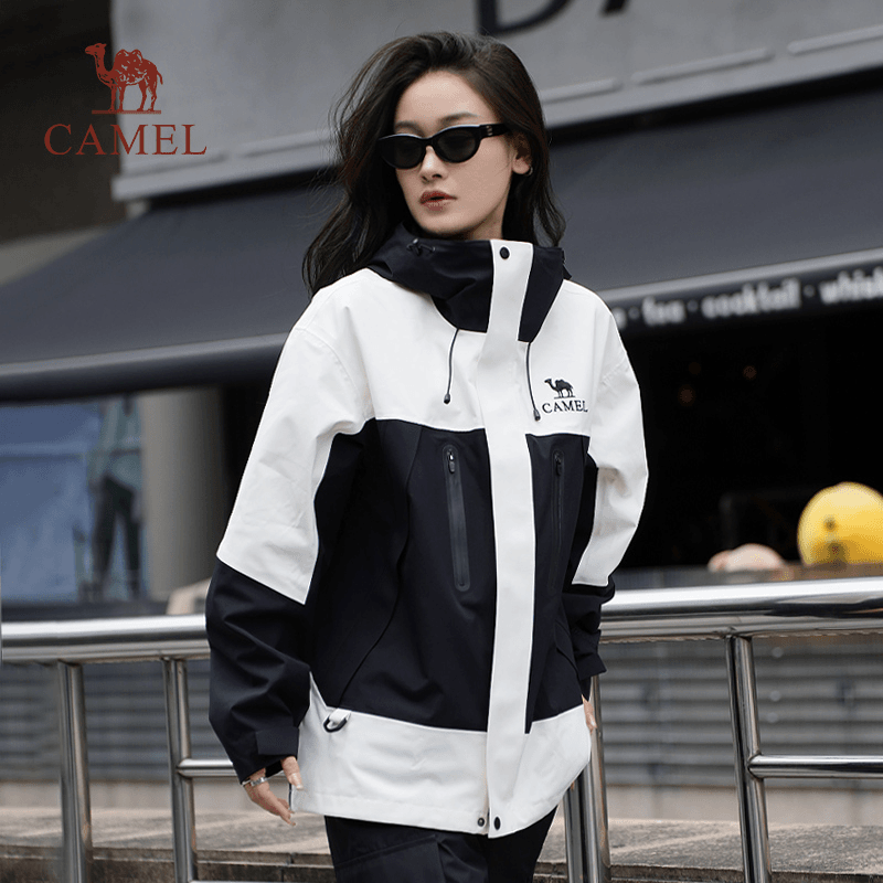 骆驼女装单层冲锋衣2025新款秋冬户外防风防水连帽立领男女款外套