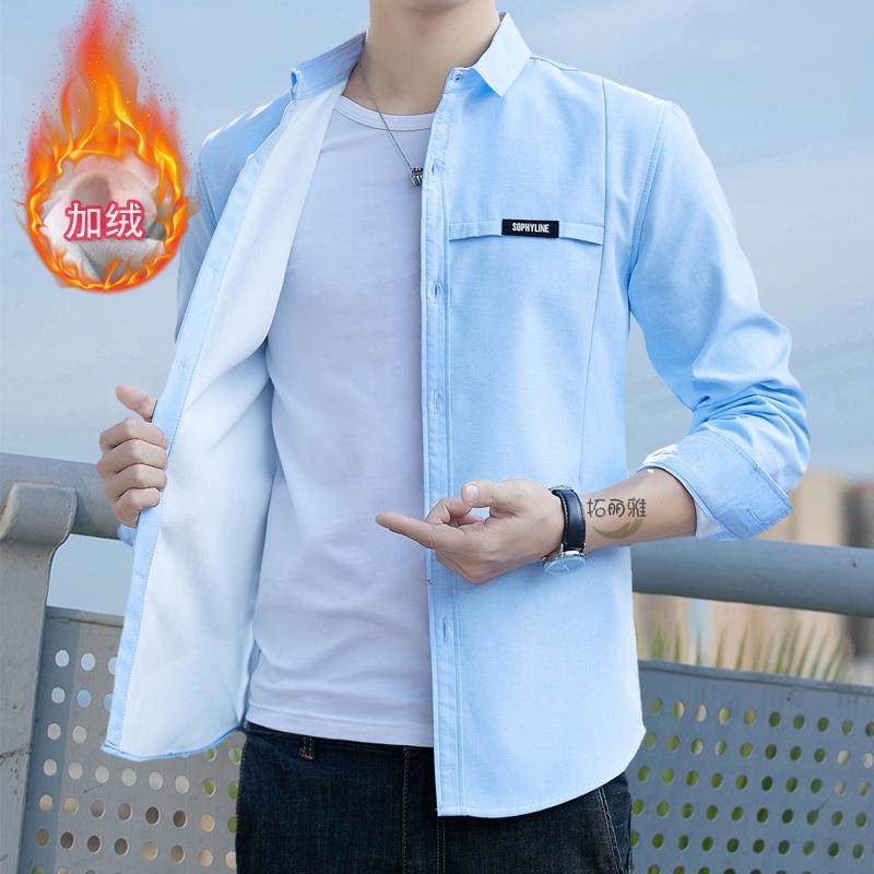 罗蒙加绒加厚衬衫男士冬季商务休闲保暖免烫抗皱衬衣上衣打底衫