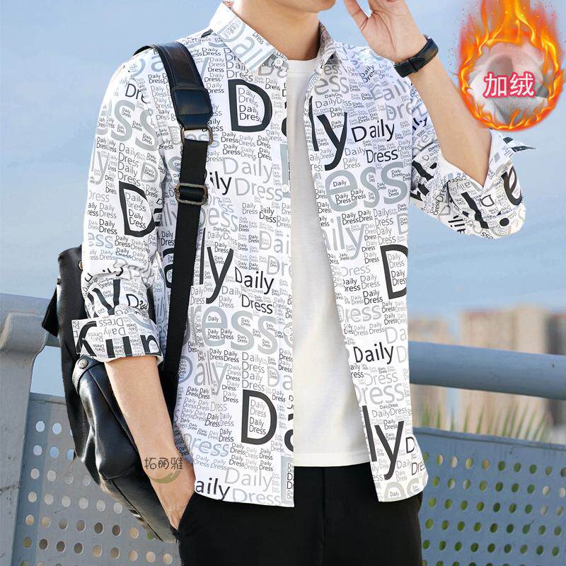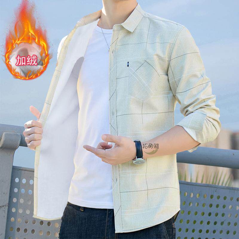 拓丽雅春高档帅气保暖加绒长袖迷彩衬衣潮流休闲商务免烫男士衬衫