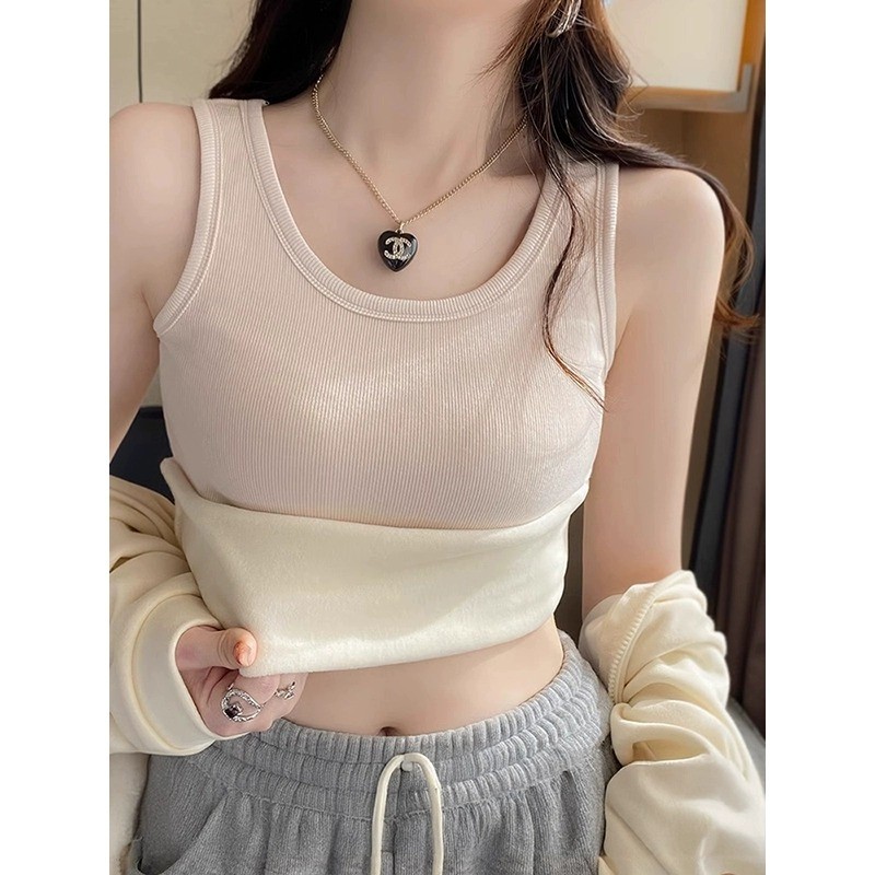 磨毛保暖背心女2025冬新款带胸垫一体无痕吊带打底内衣加绒加厚