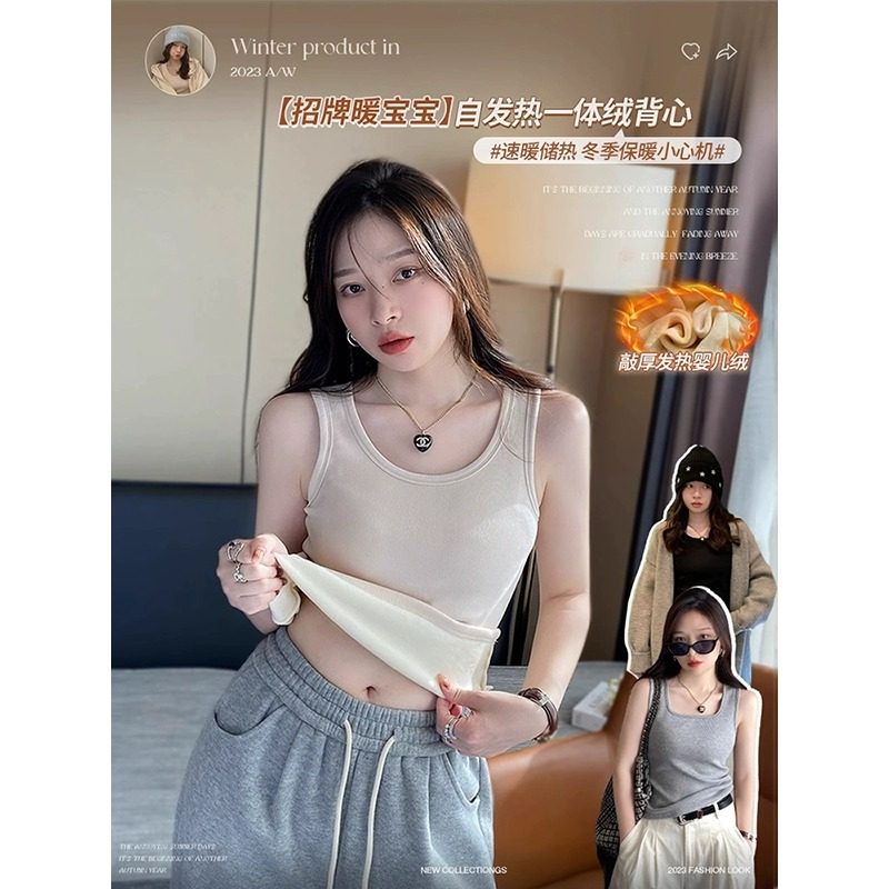 保暖吊带背心女秋冬2024新款加绒加厚白色内搭打底衫修身无袖上衣