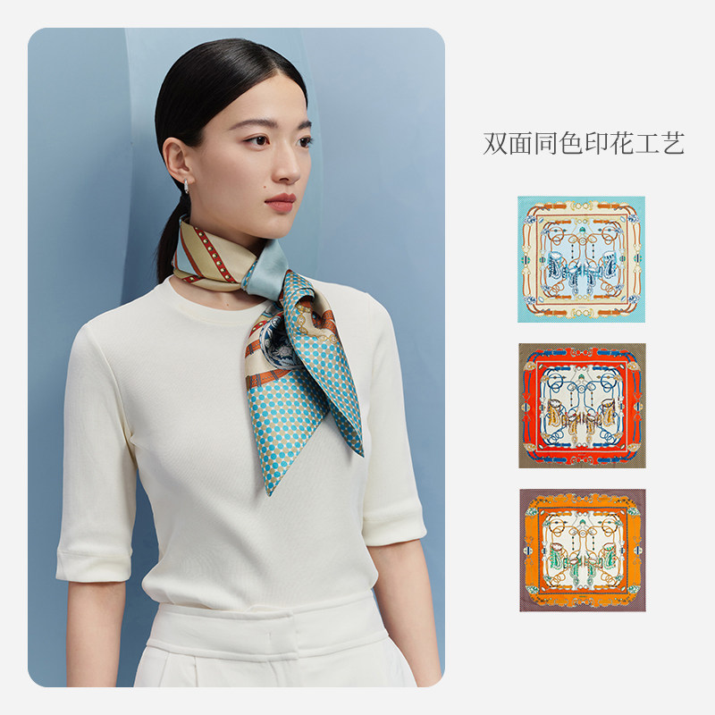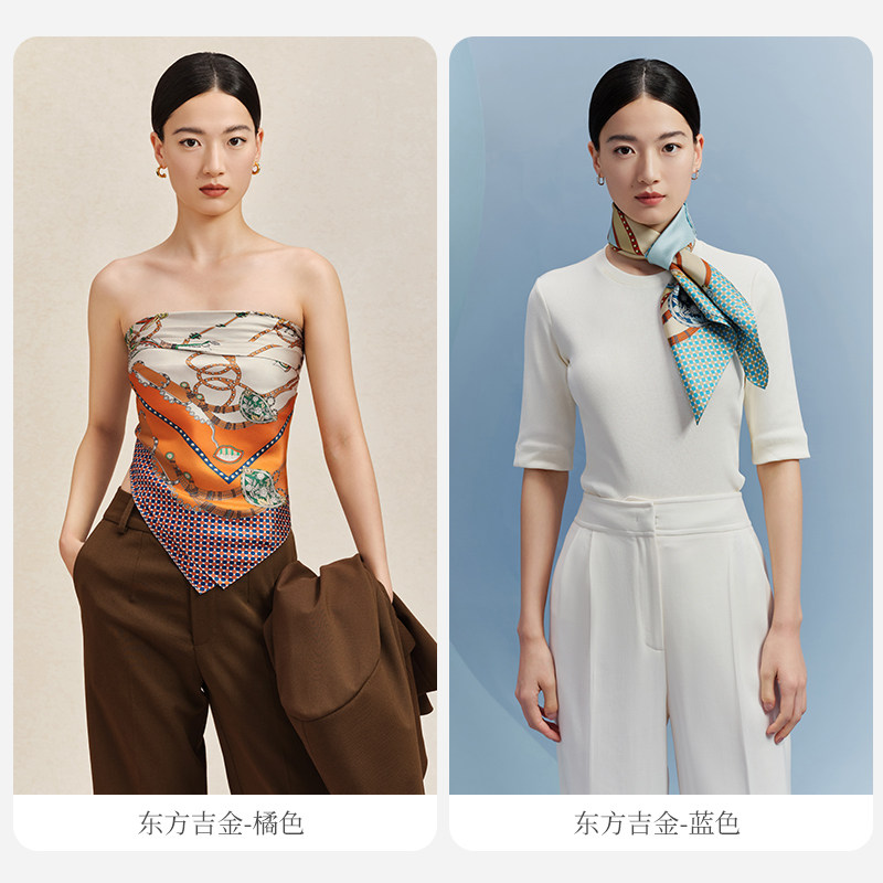 万事利年度新款100%桑蚕丝丝巾百搭双面印花大方巾-东方吉金