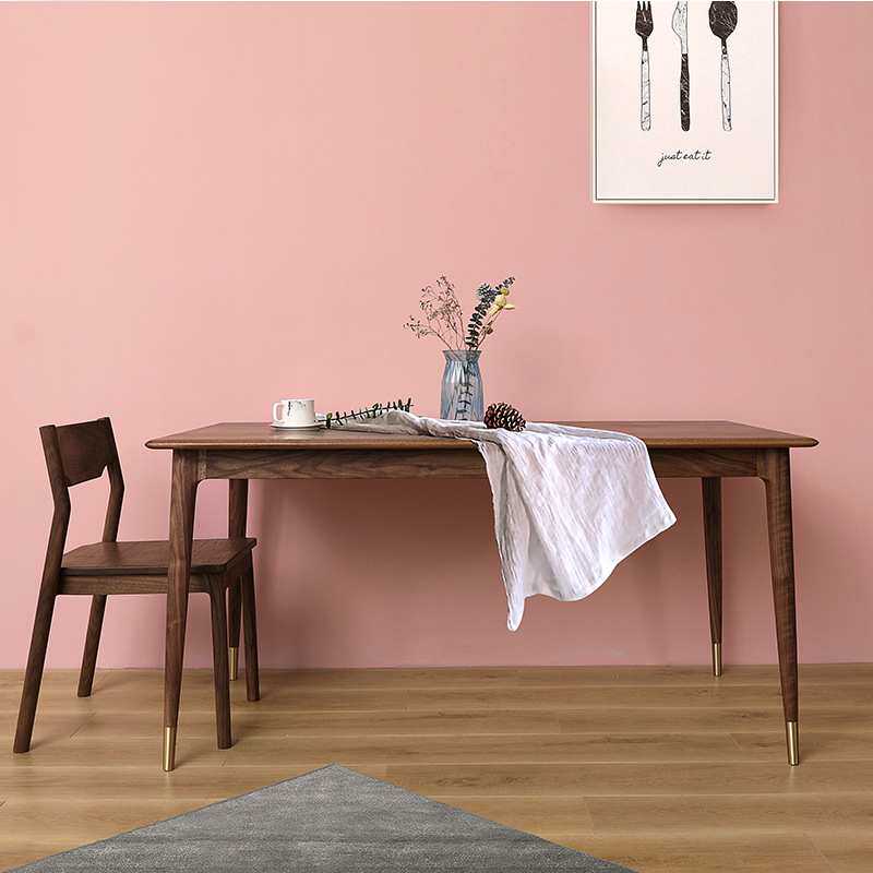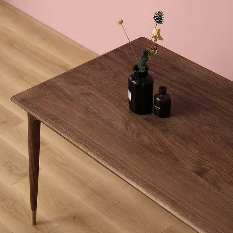 北欧原木黑胡桃餐桌现代简约餐厅北欧实木日式长方形餐桌书桌家具