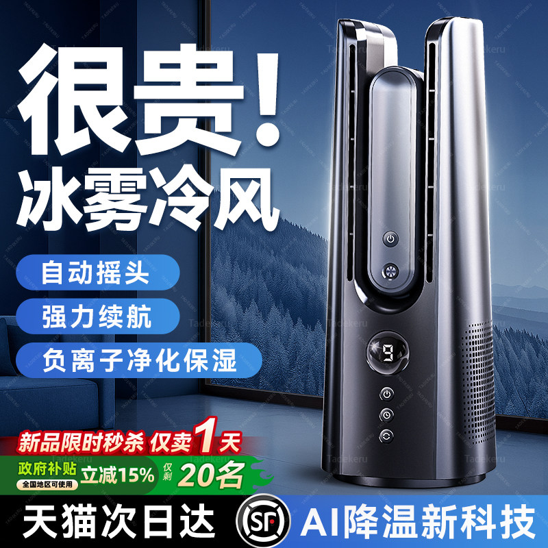 【德国进口】空调扇2026新款家用办公卧室宿舍桌面水冷喷雾省电风扇USB充电静音可摇头超长续航夏天制冷风机
