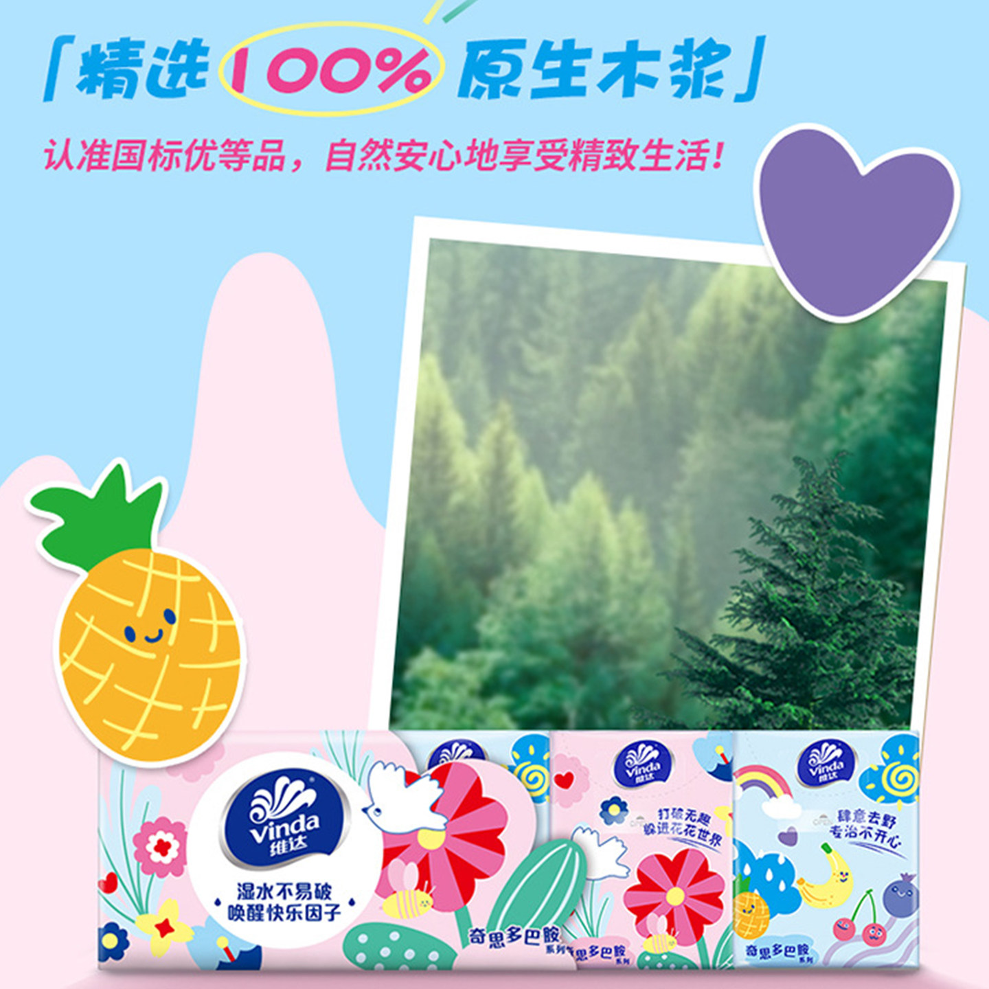 维达多巴胺手帕纸3层8张10包纸巾小包餐巾纸面巾纸便携卫生纸随身