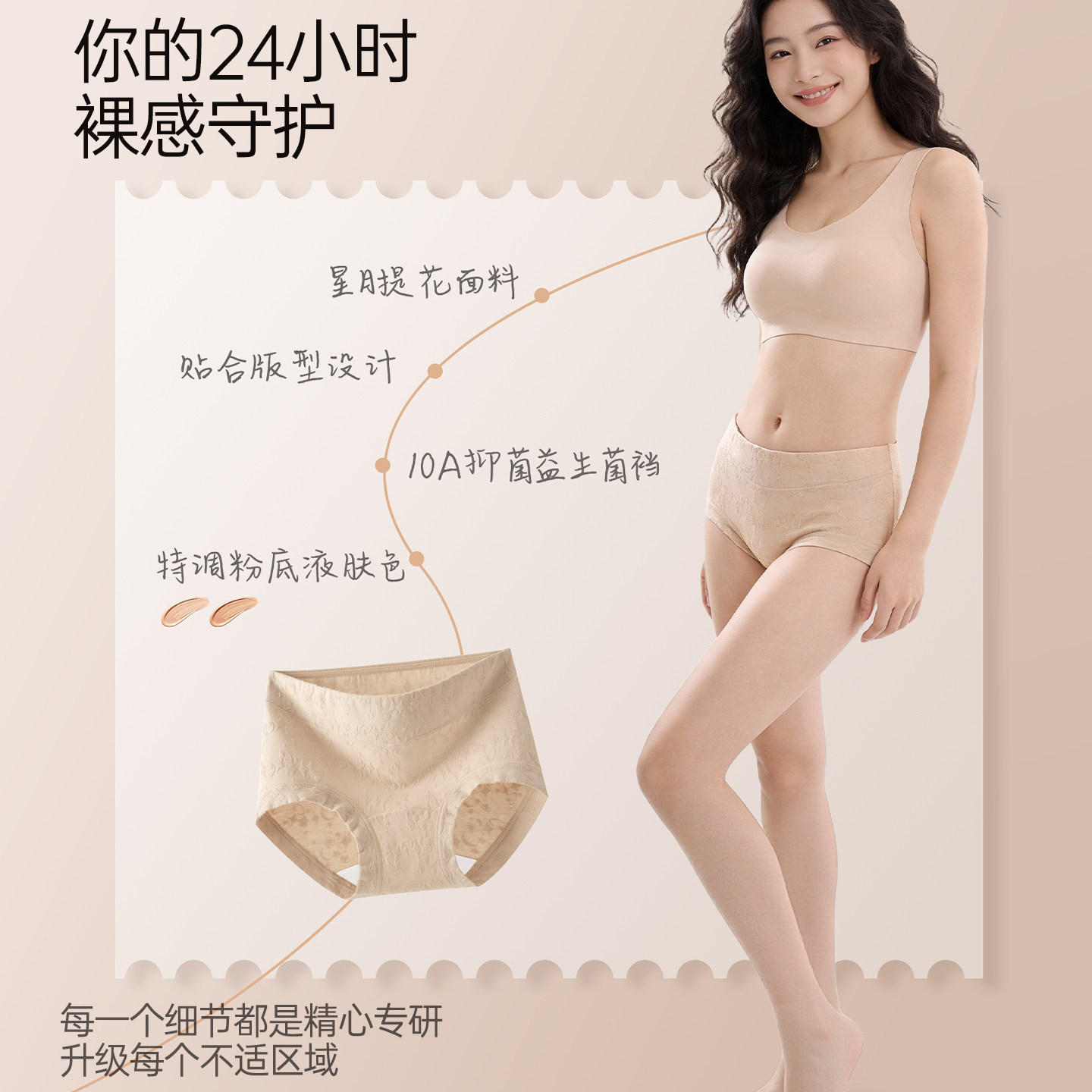 草本初色妇炎洁牌内裤女2025新中高腰加长纯棉底裆无痕抗菌三角裤