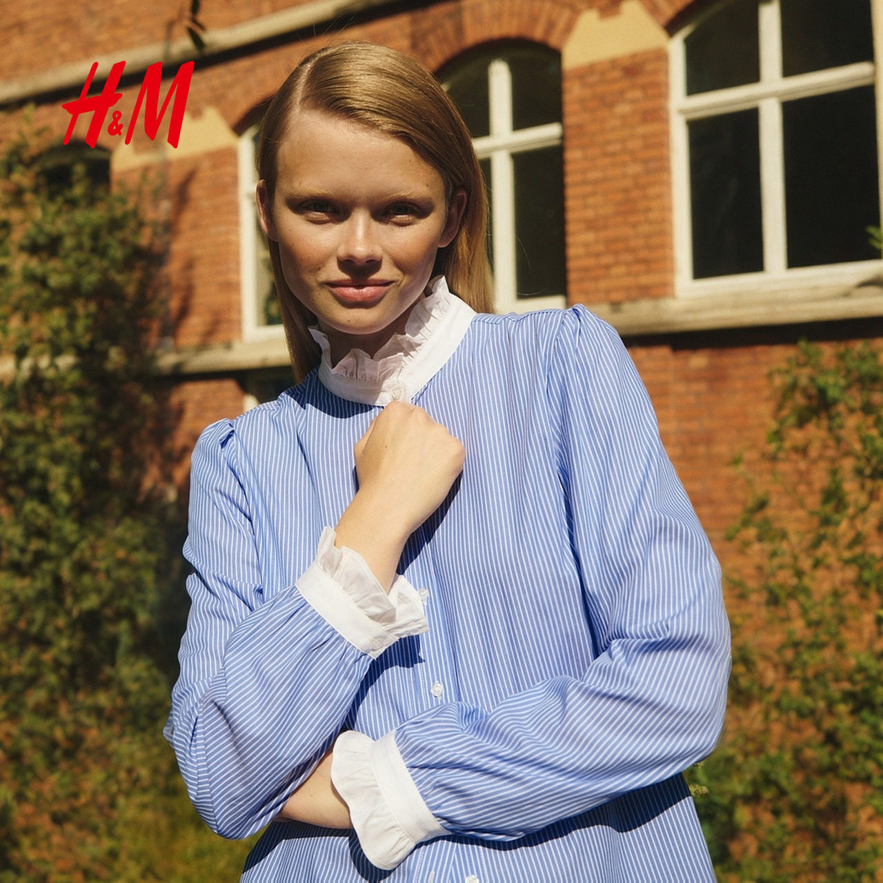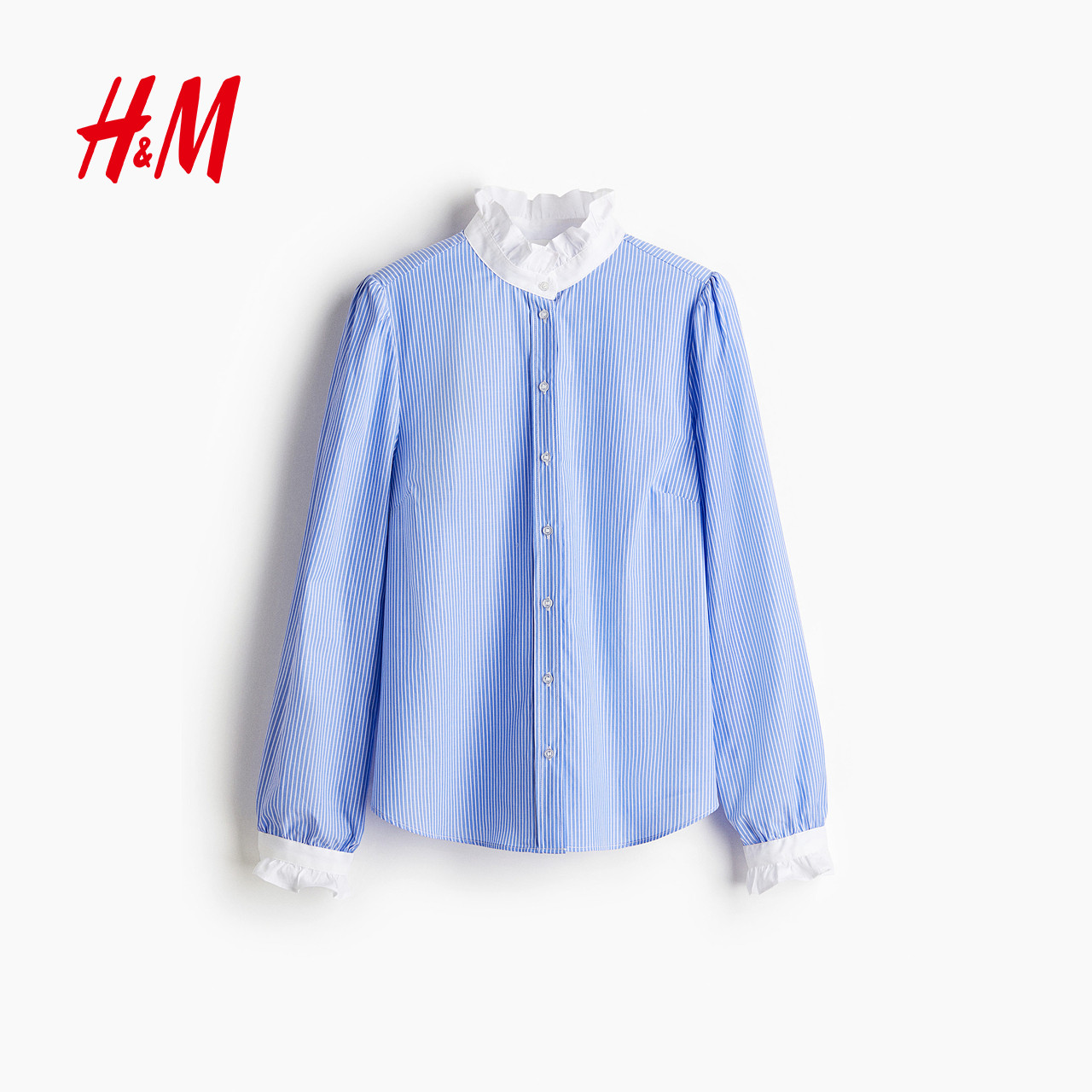 HM女装衬衫2025年冬季新款时尚潮流气质荷叶边领口衬衫1295517