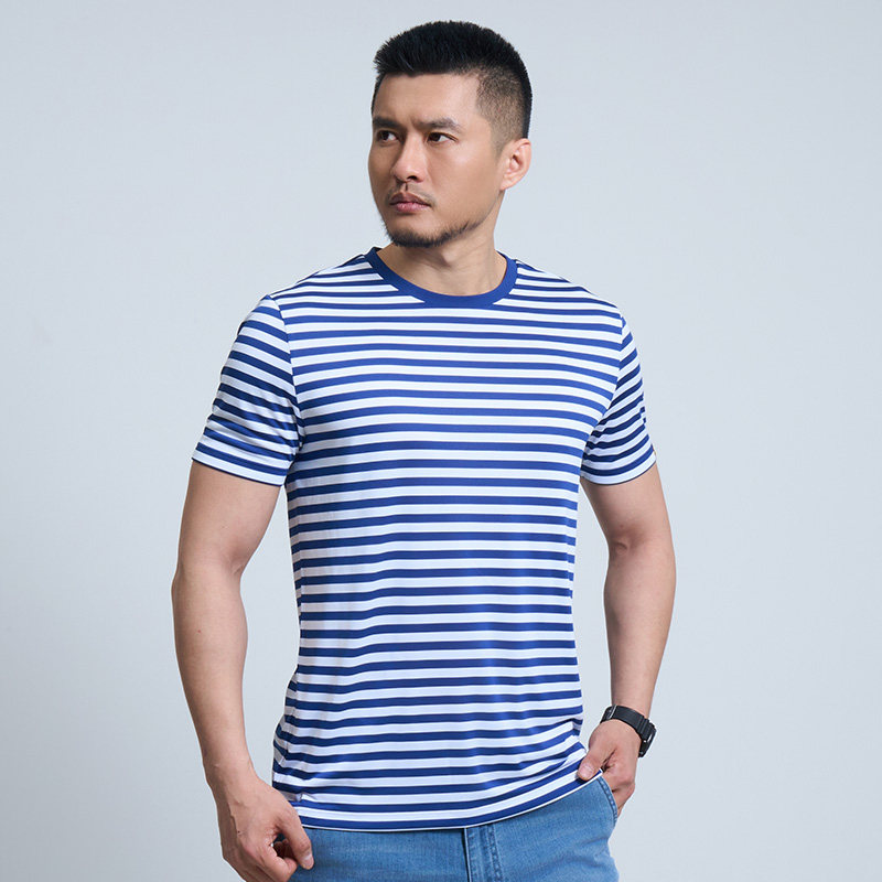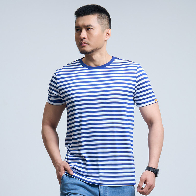 【两件更优惠】龙牙海魂衫男士条纹衫夏季短袖半袖圆领t恤水兵服