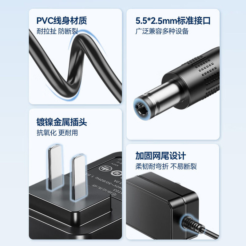 3C认证电源适配器5V6V9V12V15V19v24V音响路由器按摩仪显示器监控摄像头扩音器机顶盒台灯风扇DC圆孔充电器线