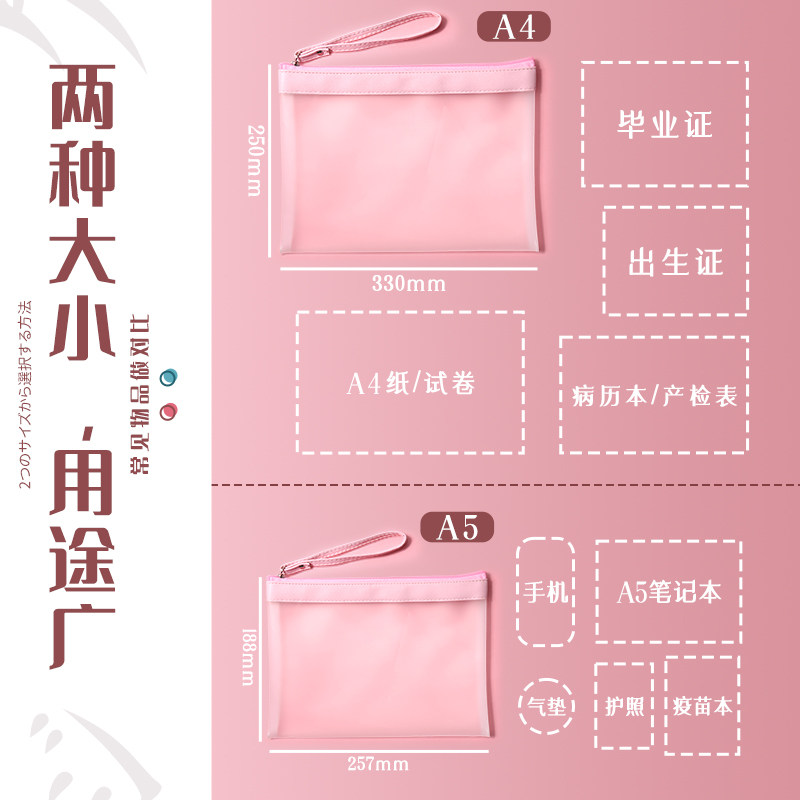 文件袋档案袋孕妇产检资料收纳袋拉链式A4孕妈孕期检查证件疫苗本a5孕检文件夹手提包加厚收纳包防水透明袋子