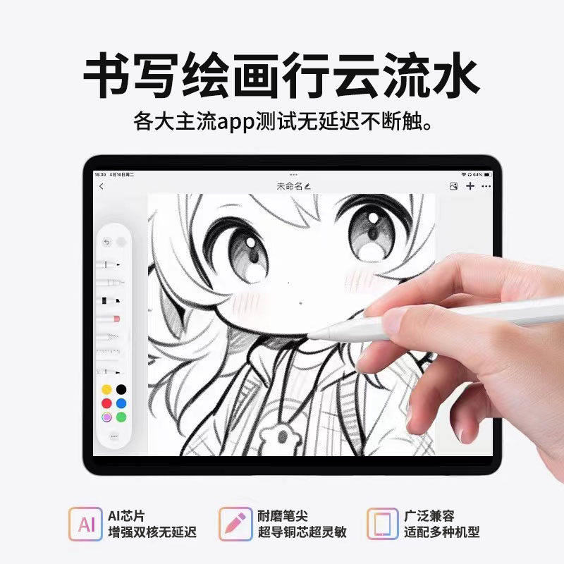 电容笔iPad艾卓吉尔A8适用苹果平板air触控笔ipencil手写笔iPad触屏笔铅笔ipad11笔apple pencil通用笔尖多彩