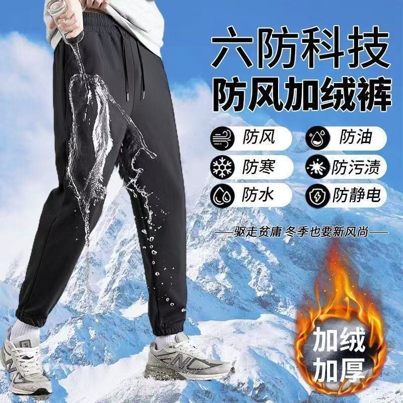 六防休闲裤男士秋冬季加绒加厚防风防水保暖弹力直筒长裤子男防寒