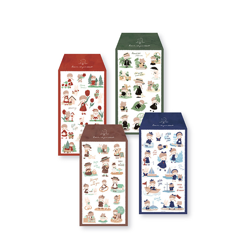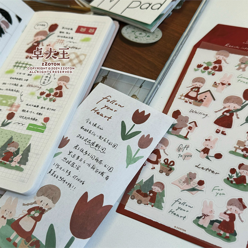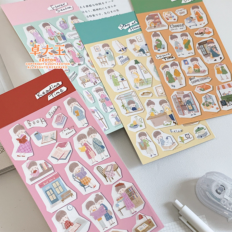 卓大王贴纸PVC防水可爱水彩风DIY盐系日系女孩人物手帐贴画装饰