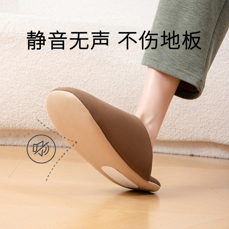 日式棉拖鞋女四季静音无声棉麻家居室内木地板软底男可机洗防臭