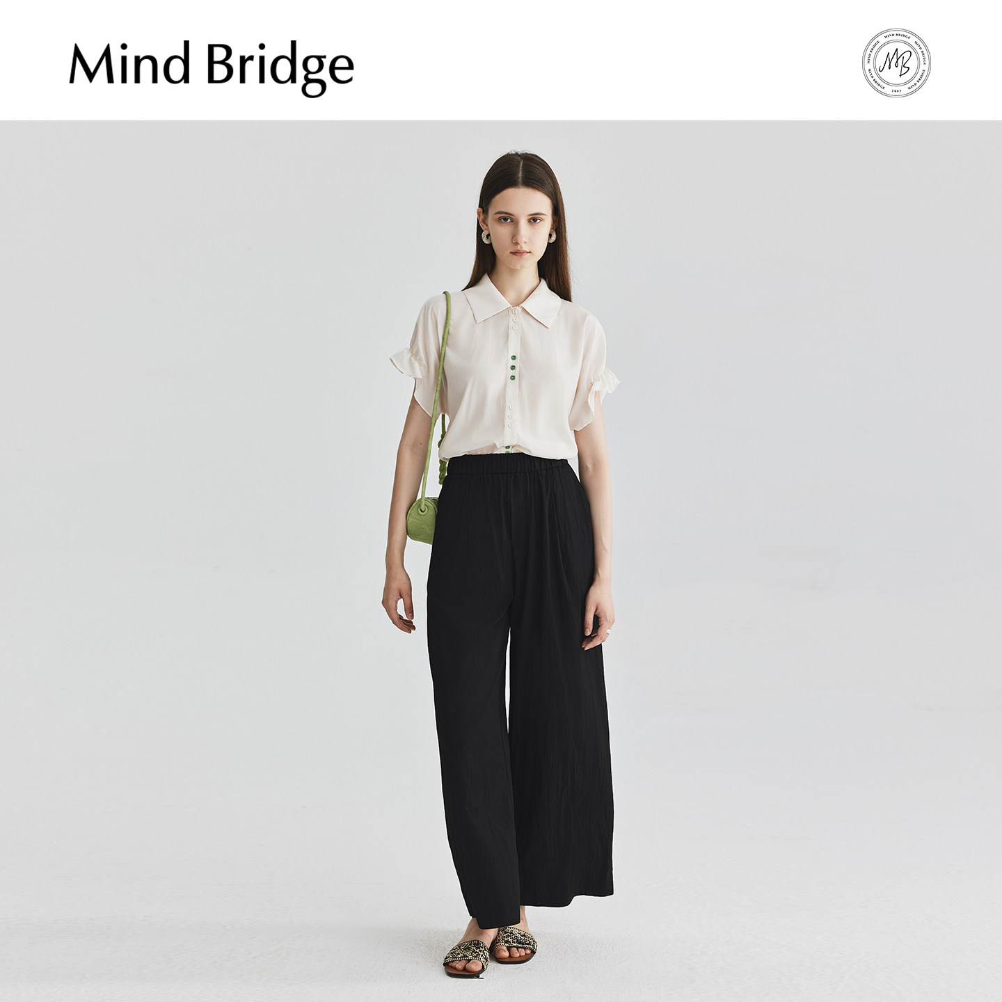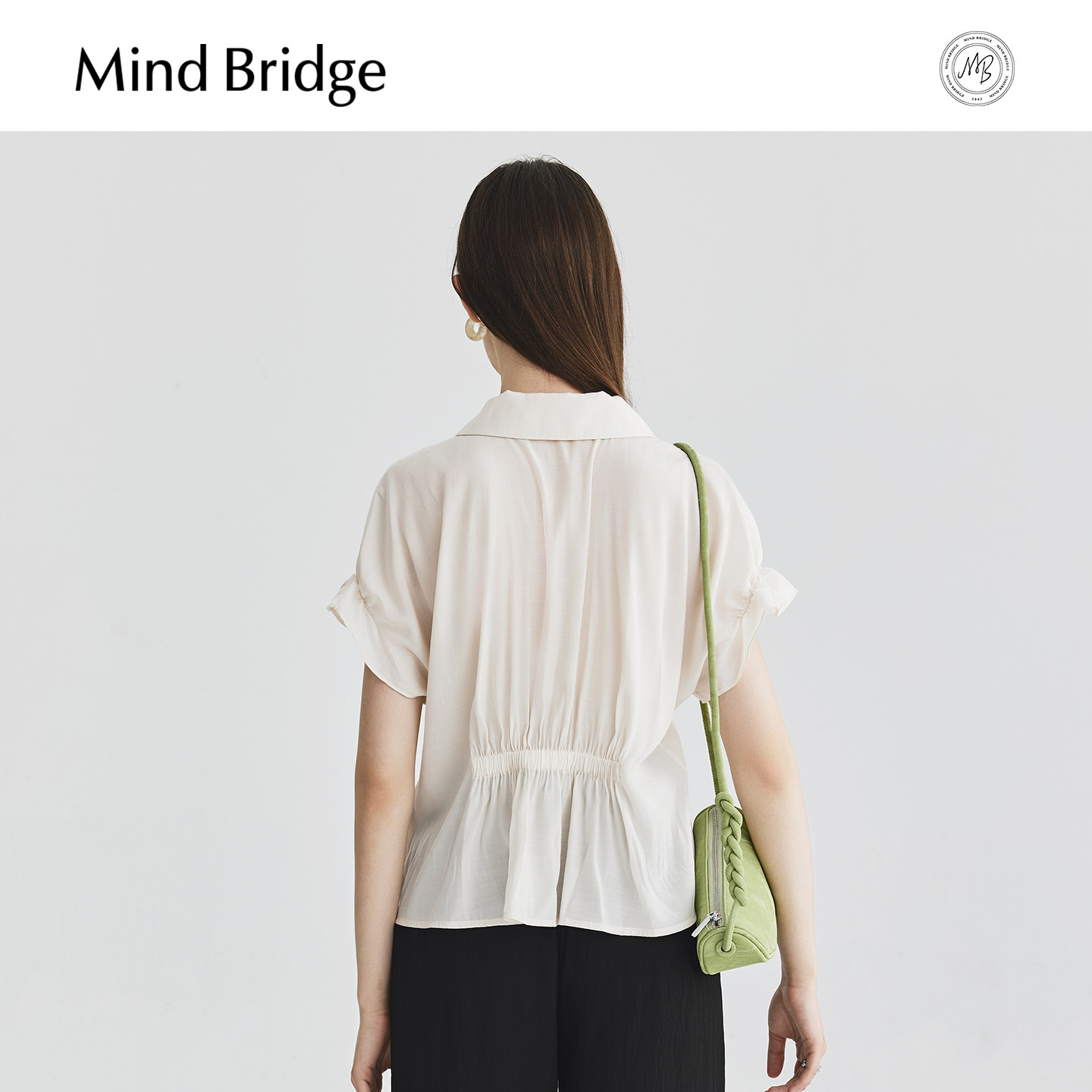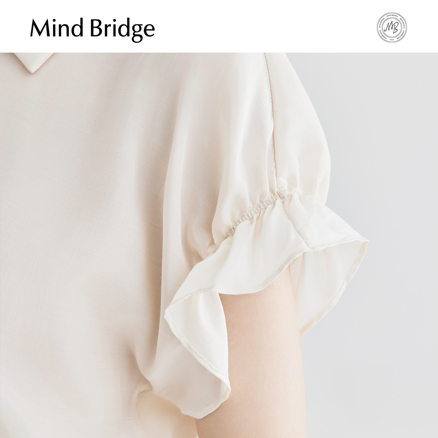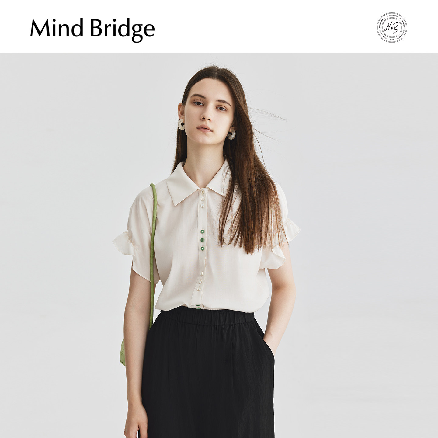 MB MindBridge2025夏季花边袖衬衫夏季韩系翻领上衣女士通勤衬衣