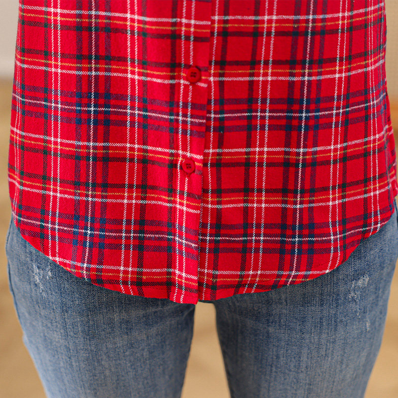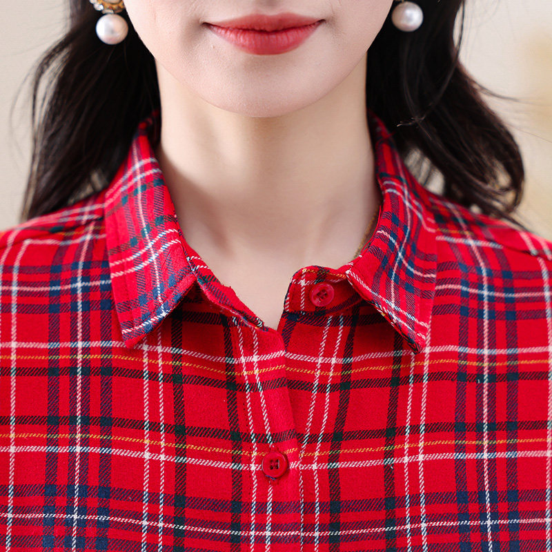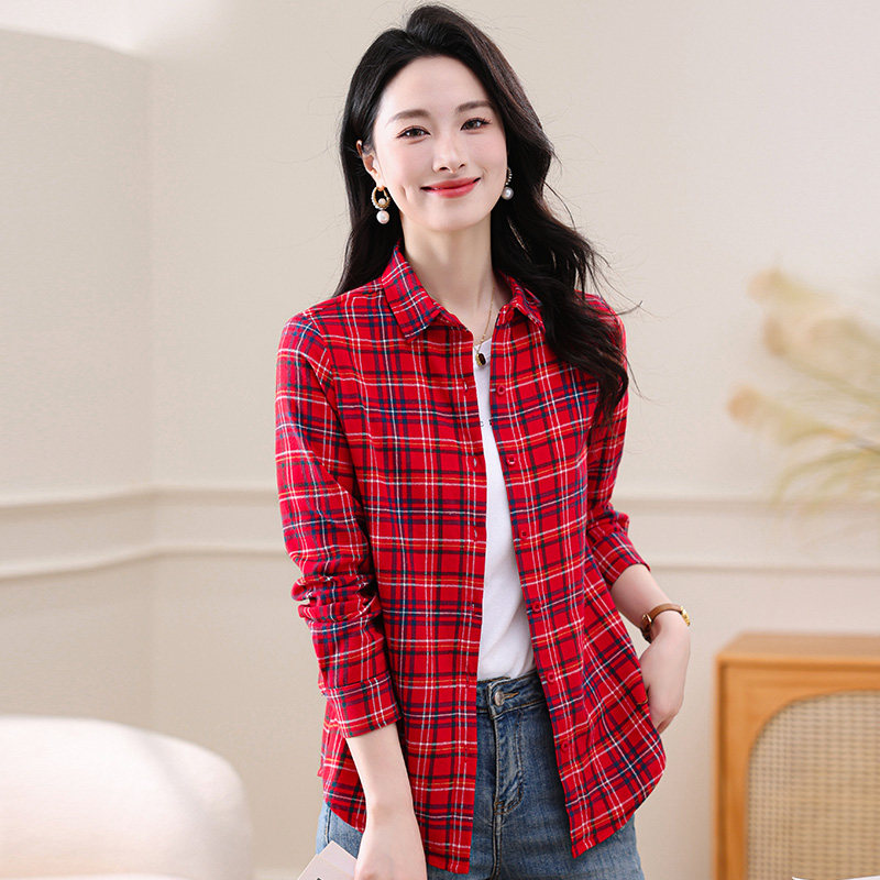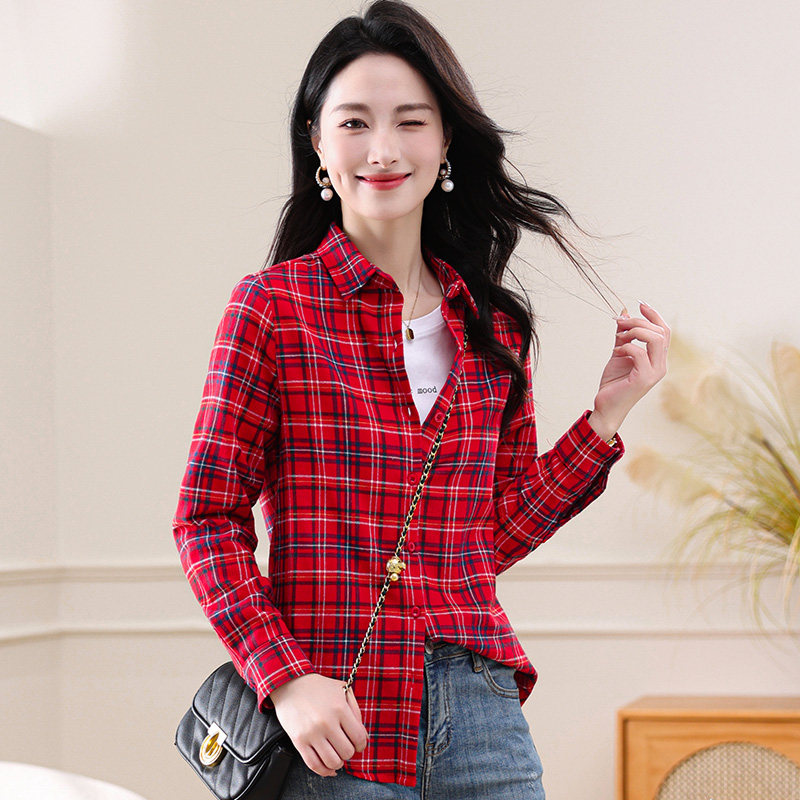 恒源祥文艺复古格子衬衫女纯棉长袖春秋宽松休闲衬衣外套港味潮潮