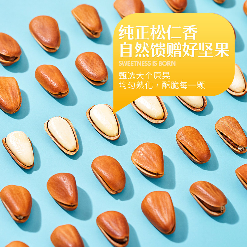 百草味东北松子大颗粒500g手剥开口休闲零食干果送礼新货坚果休闲
