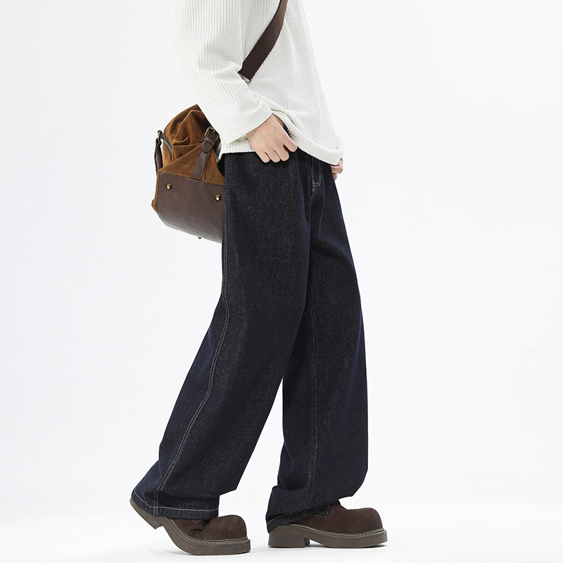森柔牛仔森马牛仔裤男裤子新款中蓝潮宽松直筒裤子男复古百搭猫须