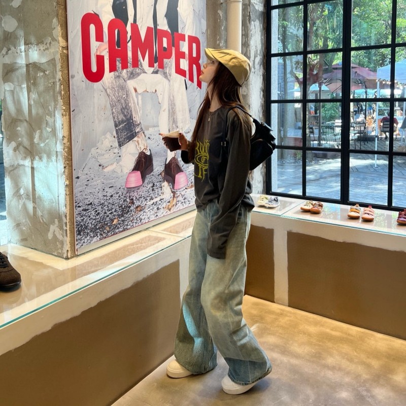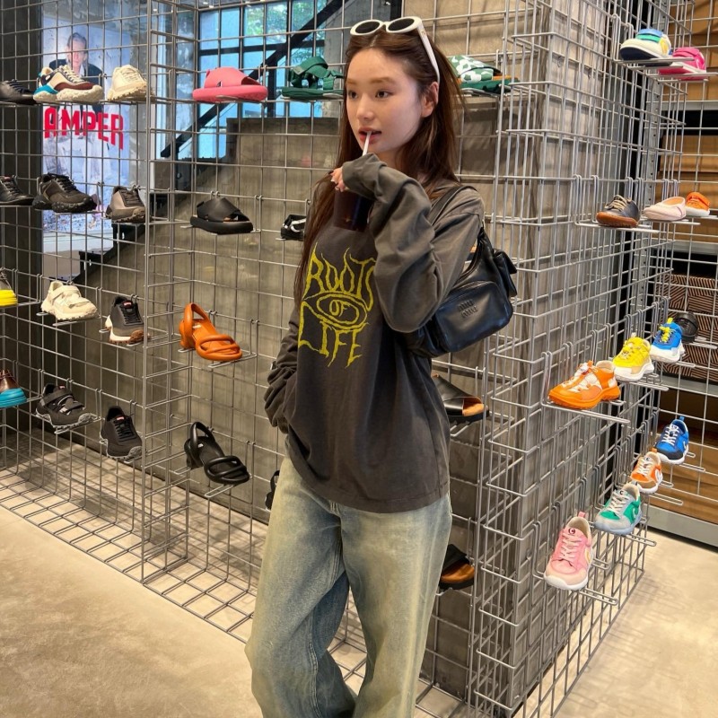 WE11DONE FUGUI小众潮牌美式休闲打底衫字母印花水洗做旧长袖T恤