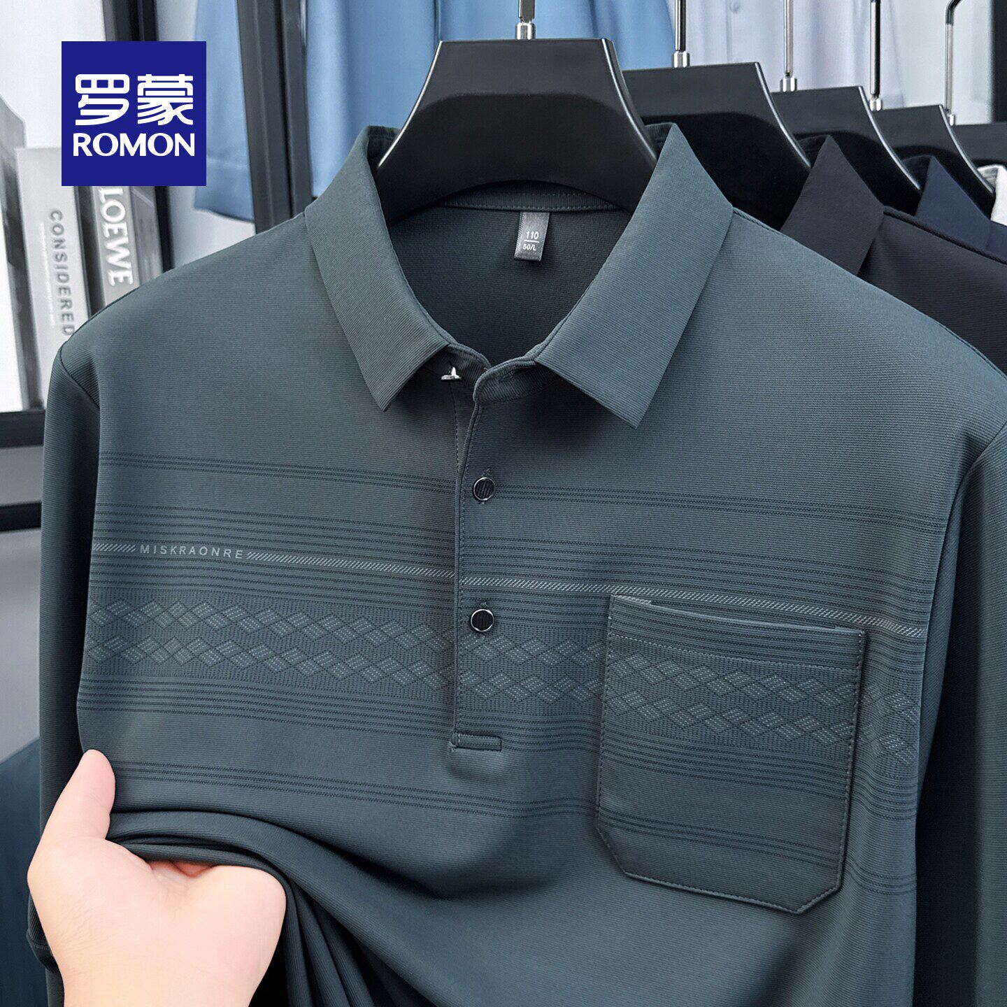 【高弹】罗蒙男士商务休闲时尚磨毛长袖POLO衫2026春季新款爸爸装