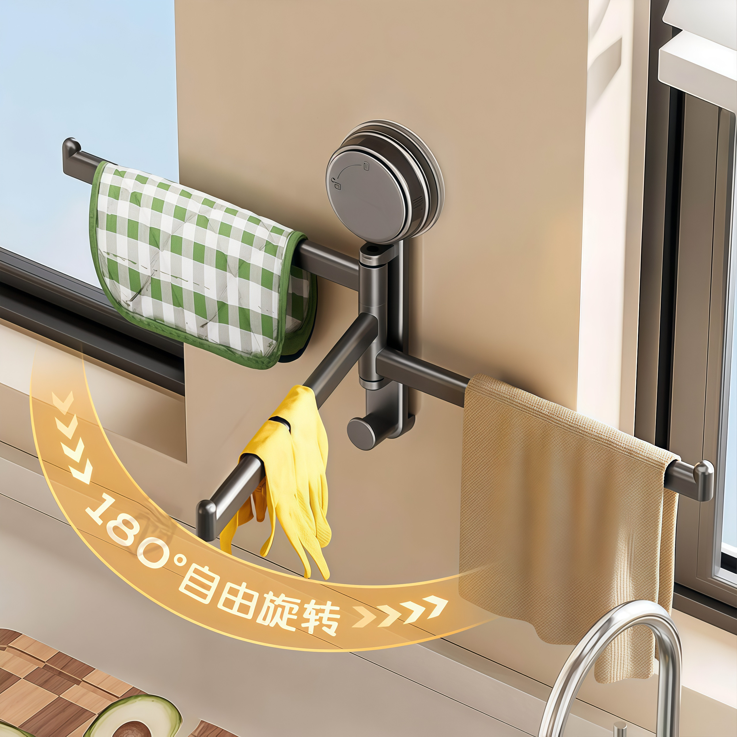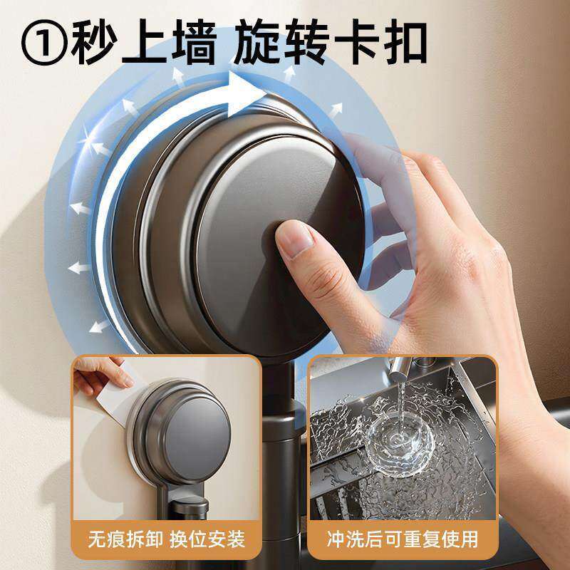 吸盘厨房抹布架置物架洗碗槽窗台多杆可旋转沥水架壁挂上墙毛巾架