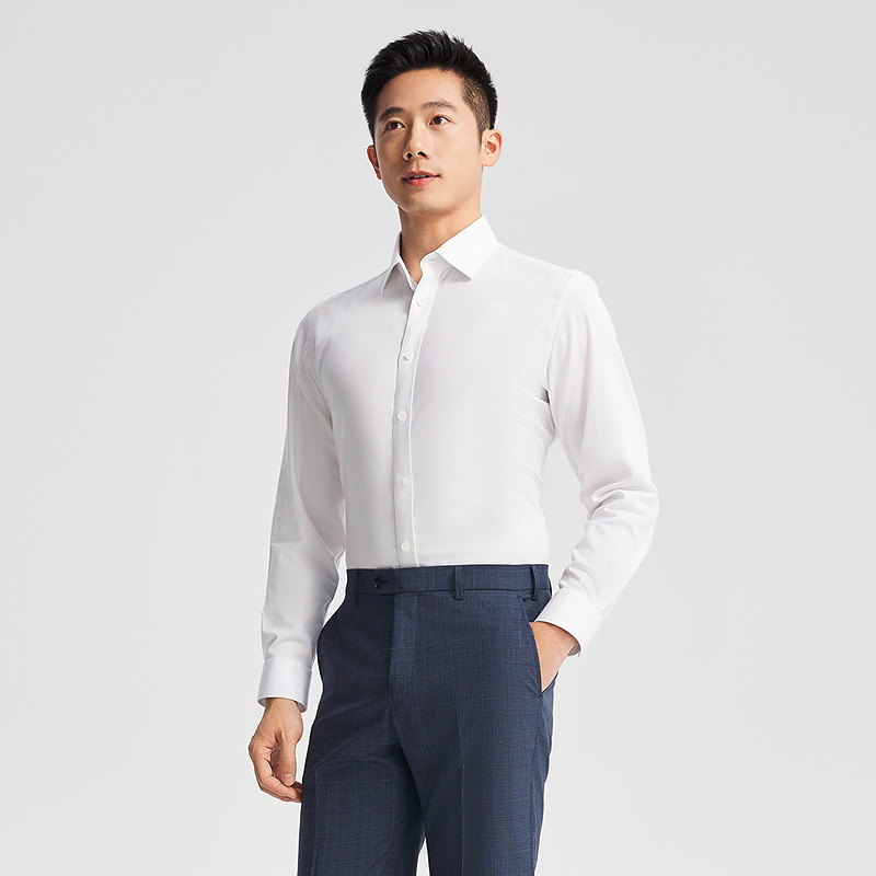 【云感衬衫】金利来春夏新款莫代尔弹力抗皱男士商务长袖白色衬衣