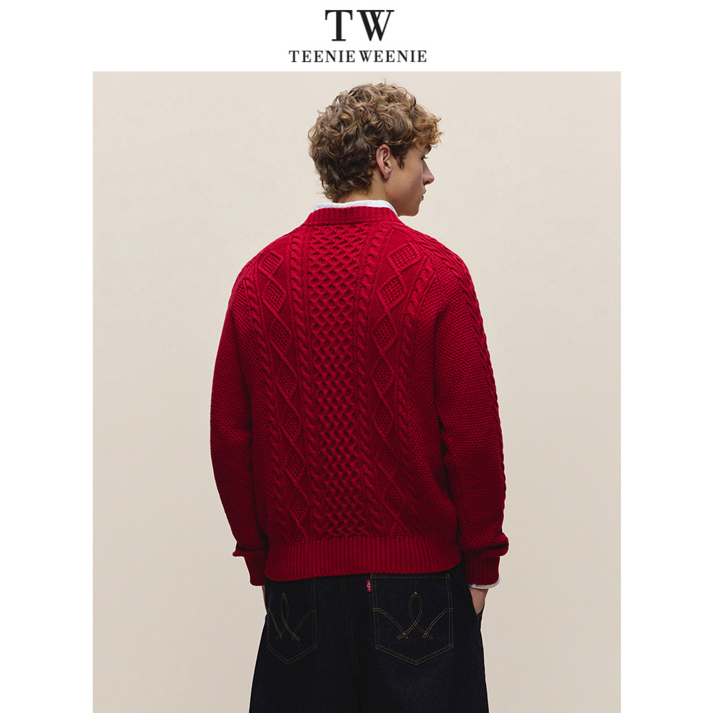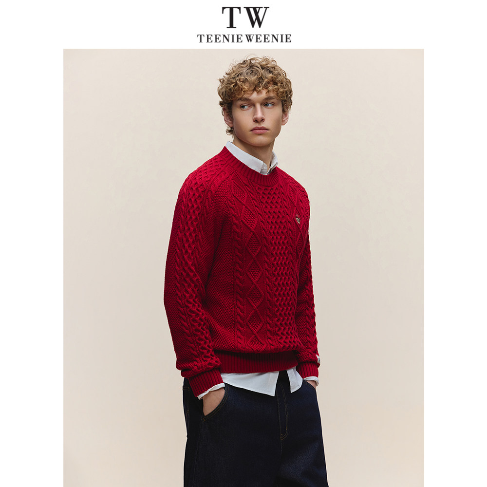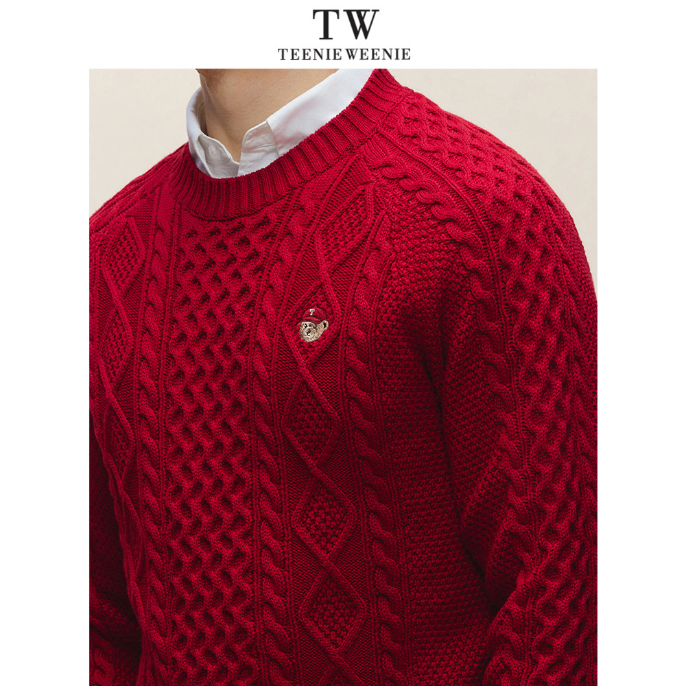 Teenie Weenie小熊男装休闲简约慵懒风纯色舒适绞花圆领套头毛衣