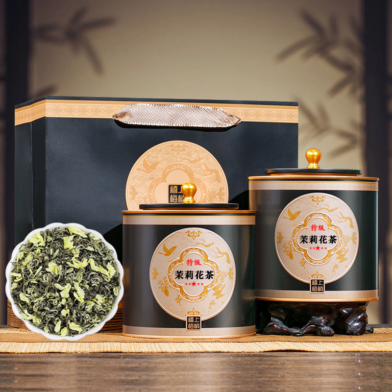 张一元茶叶新茶特种茉莉花茶八窨毛尖高档礼品金桶400g( 200g*2)