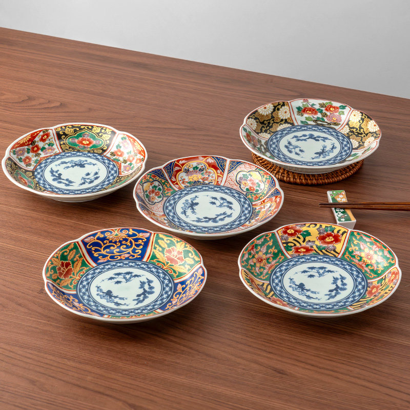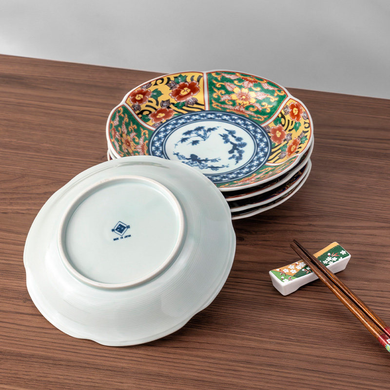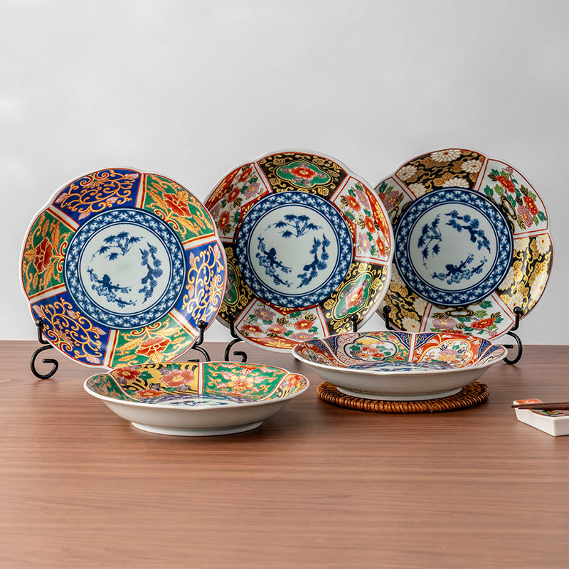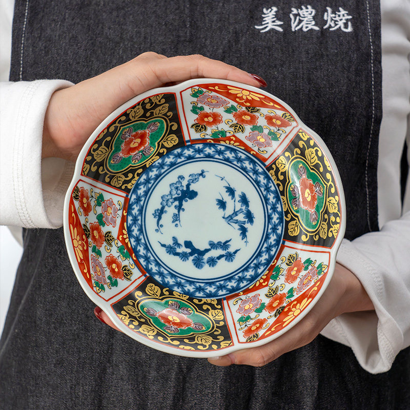 美浓烧日式金彩伊万里花口盘家用6.5英寸深盘进口精美陶瓷餐具