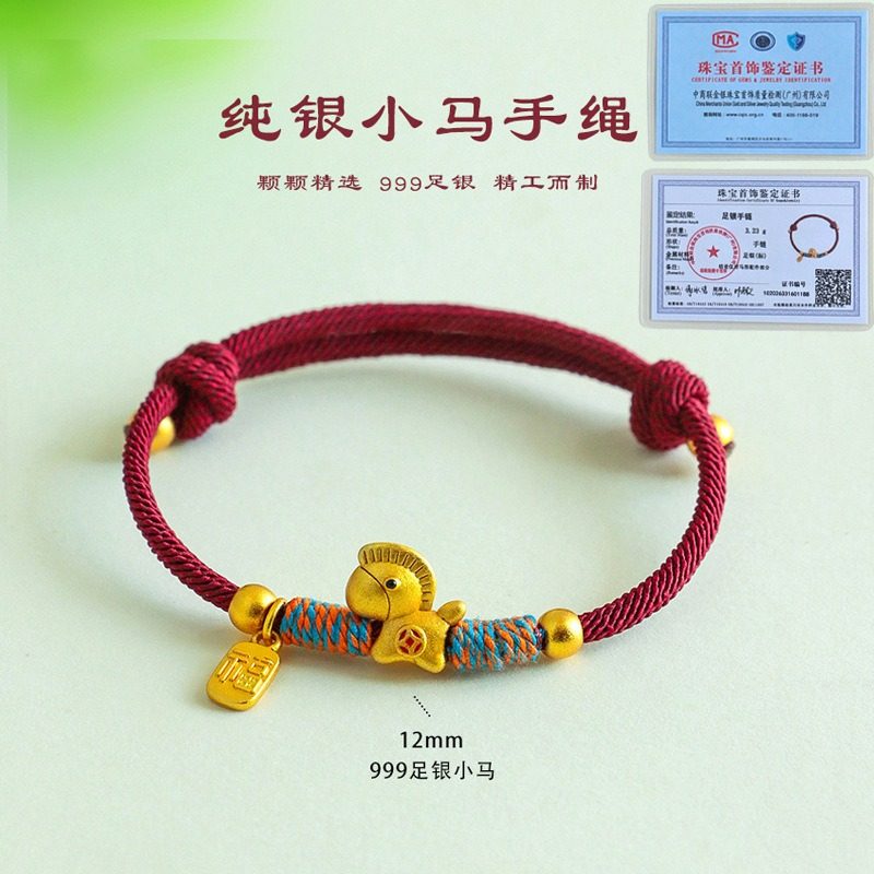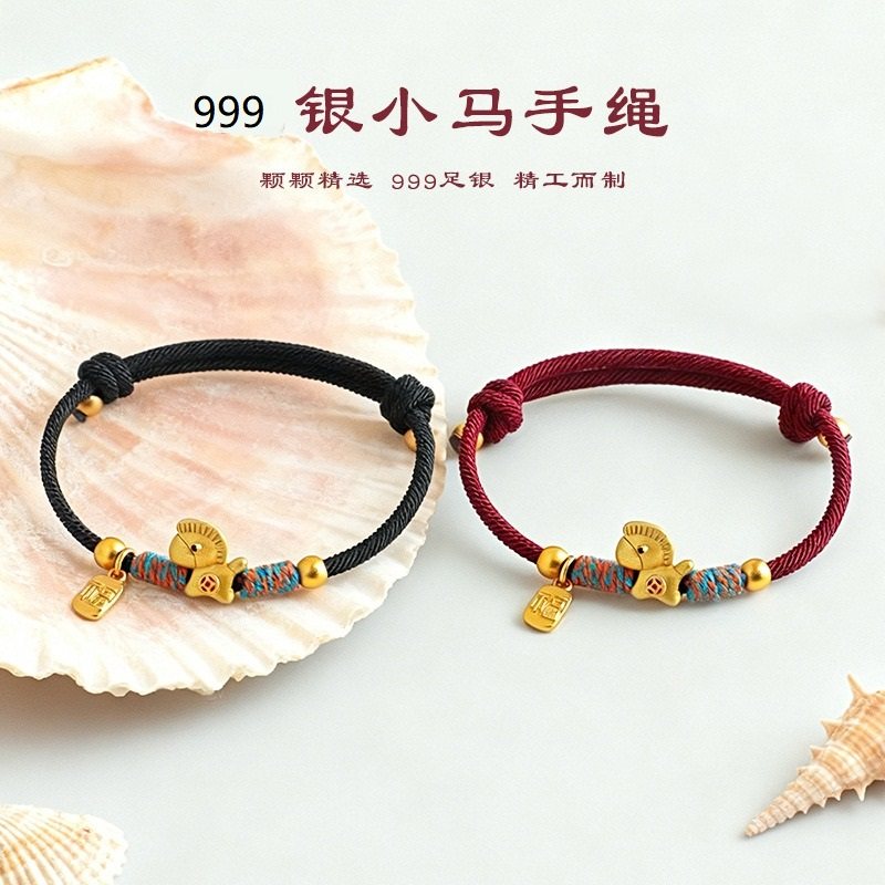 爆款马年999银招财金马编织手绳情侣可爱红绳编绳吉祥手链男女