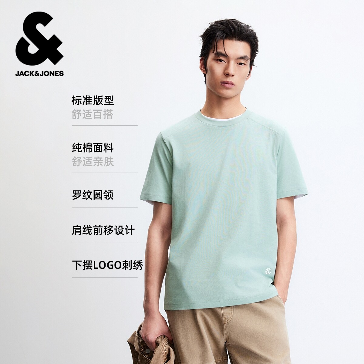 【春上新系列凉感】杰克琼斯男装新款纯色打底衫刺绣短袖男款T恤